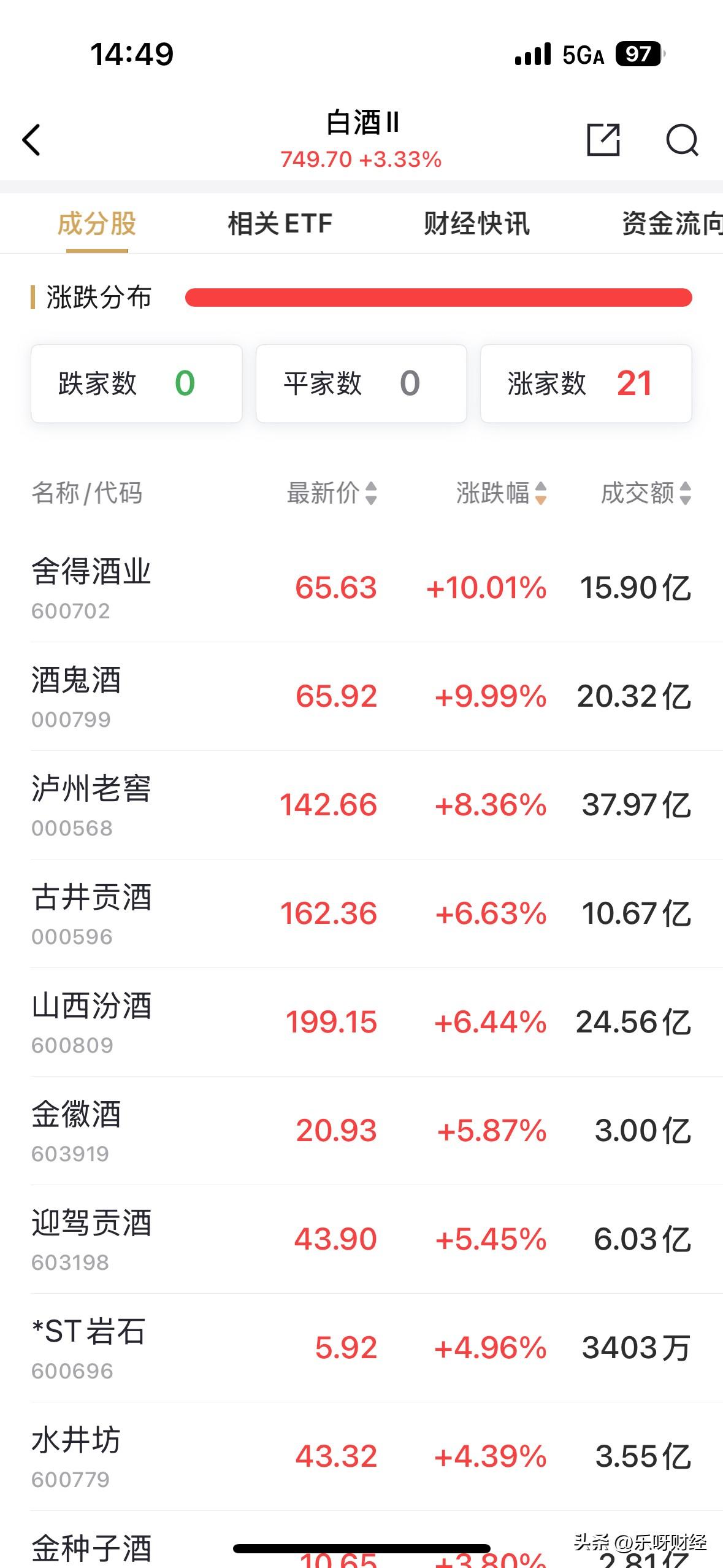 转换风格,白酒板块罕见领涨两市,板块涨幅超3%,舍得酒业、酒鬼酒涨停,泸州老窖涨幅超8%,这是机构资金开始回补高股息板块开始,还是一日游行情?白酒行业大概率今年将触底,在促消费的预期下,2026年行业业绩企稳可期。同时目前普遍10-20倍市盈率的高端白酒下行应己有限。 近期,逢低介入回补应是主基调,而不是盲目乐观。 个人持股观点,勿作操作建议!
