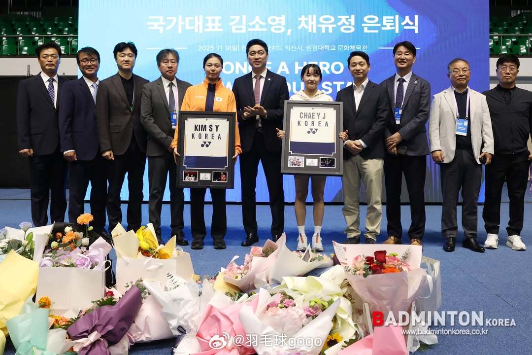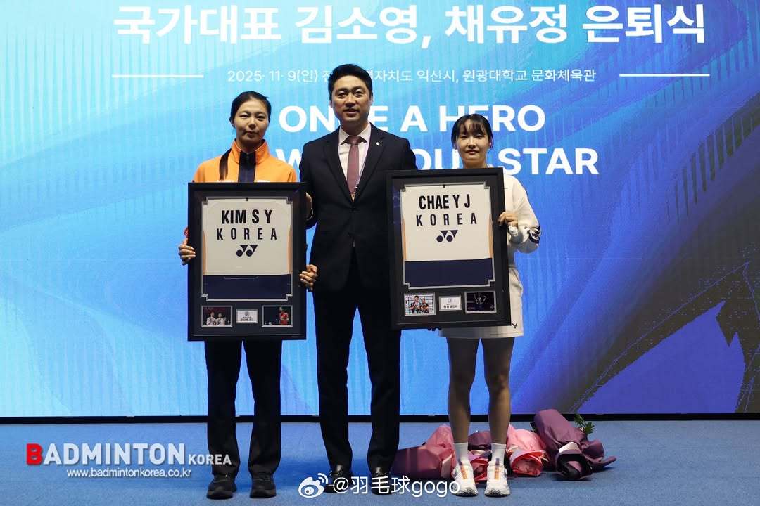 韩国羽协为蔡侑玎、金昭映举行告别仪式
