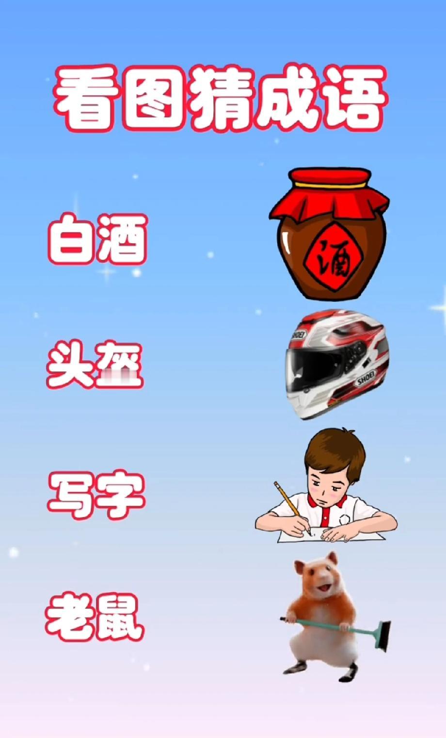 这看图猜成语绝了!“白酒+头盔+写字+老鼠”,我想破头都没猜对,评论区来个大神!