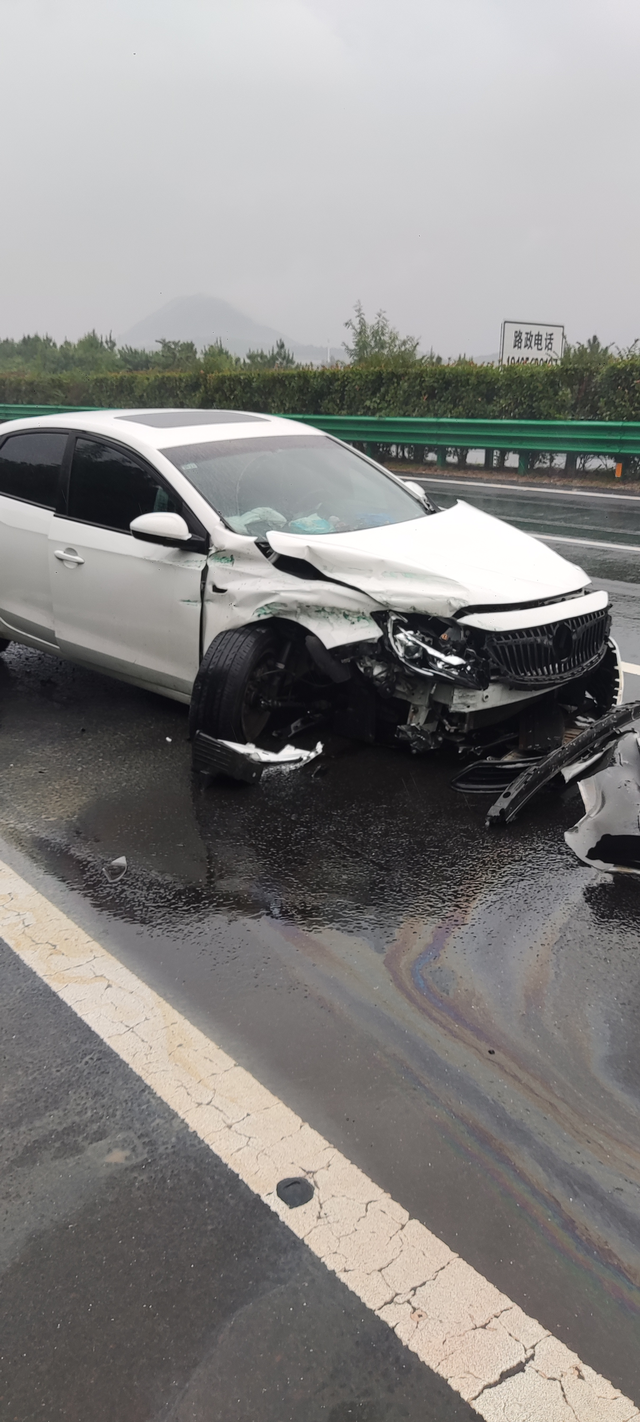 别克英朗高速事故直接干报废 车买了两年多,开了10万公里。平时开起来还是比较舒服的,车基本上没出过啥问题,本来还准备开个5年。昨天在高速上,下雨路面有积水,突然打滑控制不住方向,撞到左侧护栏后往右弹到右侧护栏,终于停下,安全气囊全部弹开,好在车上两人都没大碍。车子跟收车的谈好了46600,撞坏了两处护栏+拖车费一共3000走的保险,晚上车子大本给收车的收到40000。去医院拍了片子,右手食指骨折要住院手术,算是受了点小伤吧 车子总体还是可以的,家用代步OK 肉是有点肉,市区经常限速60也开不快,高速120还算平稳,常常开到130.140,下雨天开高速要 注意,车子会飘,速度尽量控制在110以下 🤦🏻新车一血 手上打出的别克logo,算是跟这位伙计正式告别吧