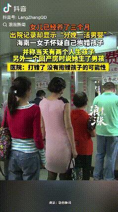 抱错孩子了?海南,一网友称,女儿已经养了三个月,突然发现出院记录上写着“分娩一活男婴”,再加上那天有两个人生孩子,另外一个回产房说生了一个男婴,网友怀疑是不是抱错孩子了,到医院询问医生说是打错了,改一下就好了,然后也没有过多解释,医院工作人员称,如果有人产生在医院抱错孩子的疑问,可以自行做亲子鉴定。 医生一句打错了改一下就行了,但是这事对当事人的困扰是特别大的,换做任何人看到出院记录写男婴,实际上是女婴,在联想到当天有两个人生孩子,就不由得产生怀疑。 写出院记录的人应该也是成年人,成年人做了错事就要承担责任,如果要做鉴定那也应该是医院免费提供而不是让当事人自己出钱去做。 为了打消心中疑虑还是去做一个亲子鉴定为好,最好还是去不同的两个医院做了后对比下,如果是亲生那也就放心了,如果不是那么孩子出生的医院就应该给一个交代了。