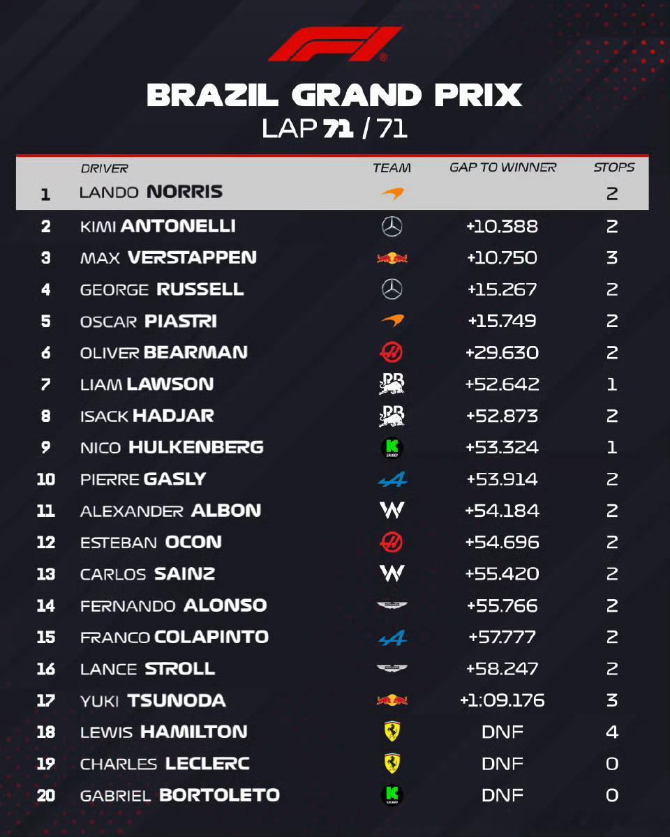 还有谁???2025f1巴西大奖赛维斯塔潘最佳车手