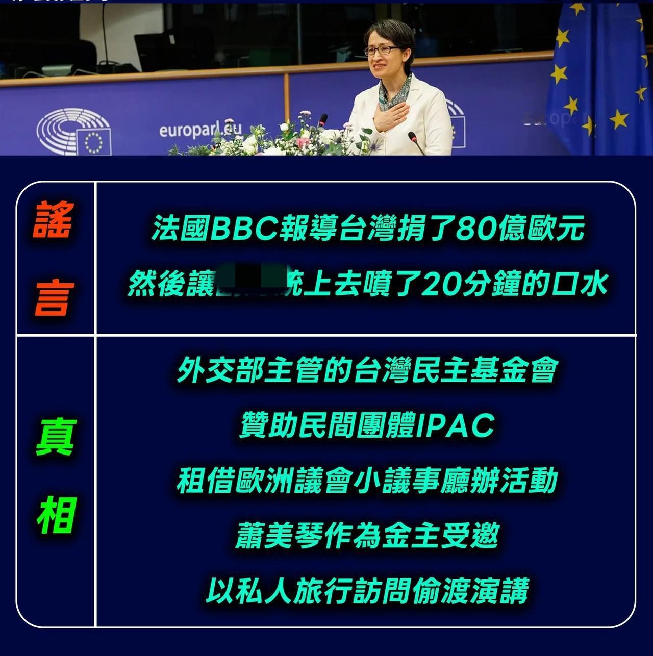 民进党这几天一直在反驳,表示没有花80亿,强调法国没有BBC电台 这是重点吗? 重点是花大钱当金主把私人旅行,租下在欧洲议会的小议事厅,大张旗鼓的,包装成访问欧洲议会和对外公开演讲。 真相是什么,已被广大的群众看穿 骗了自己骗了纳税人 还坑了欧洲议会 这就是台湾民进党 难怪不敢对诈骗犯引入鞭刑 台湾民进党