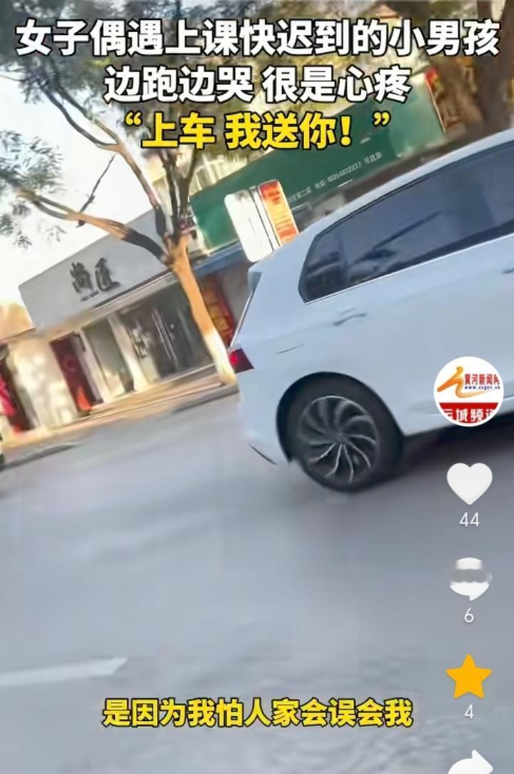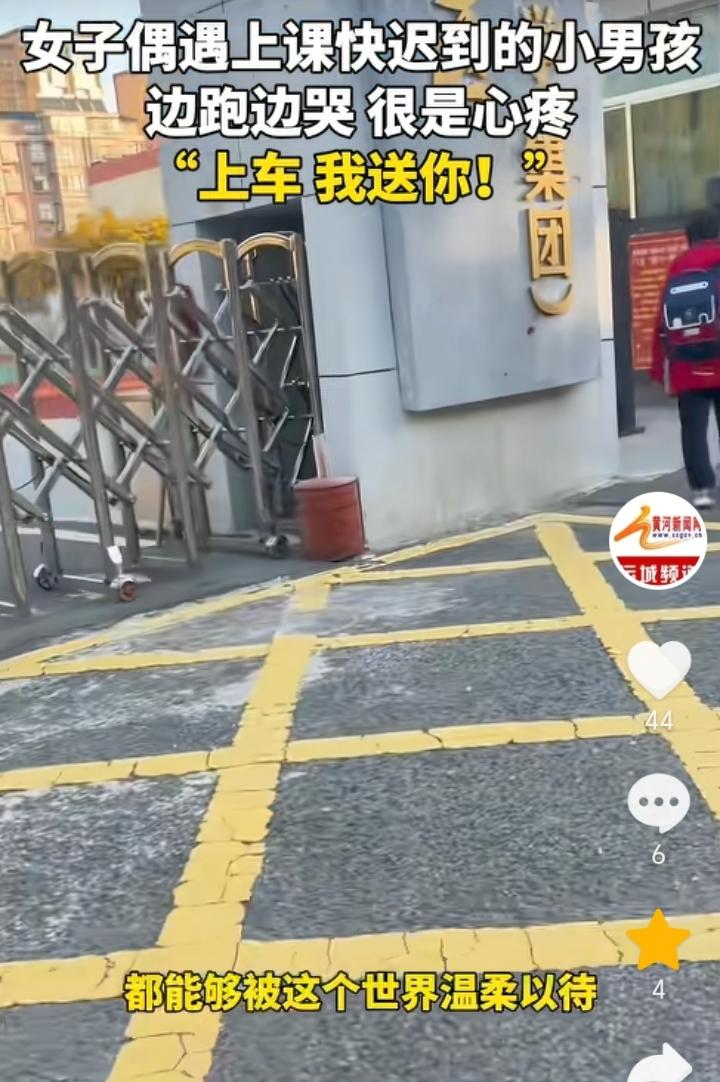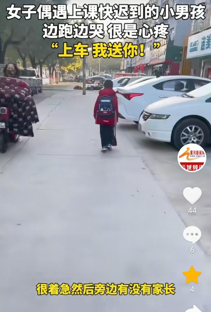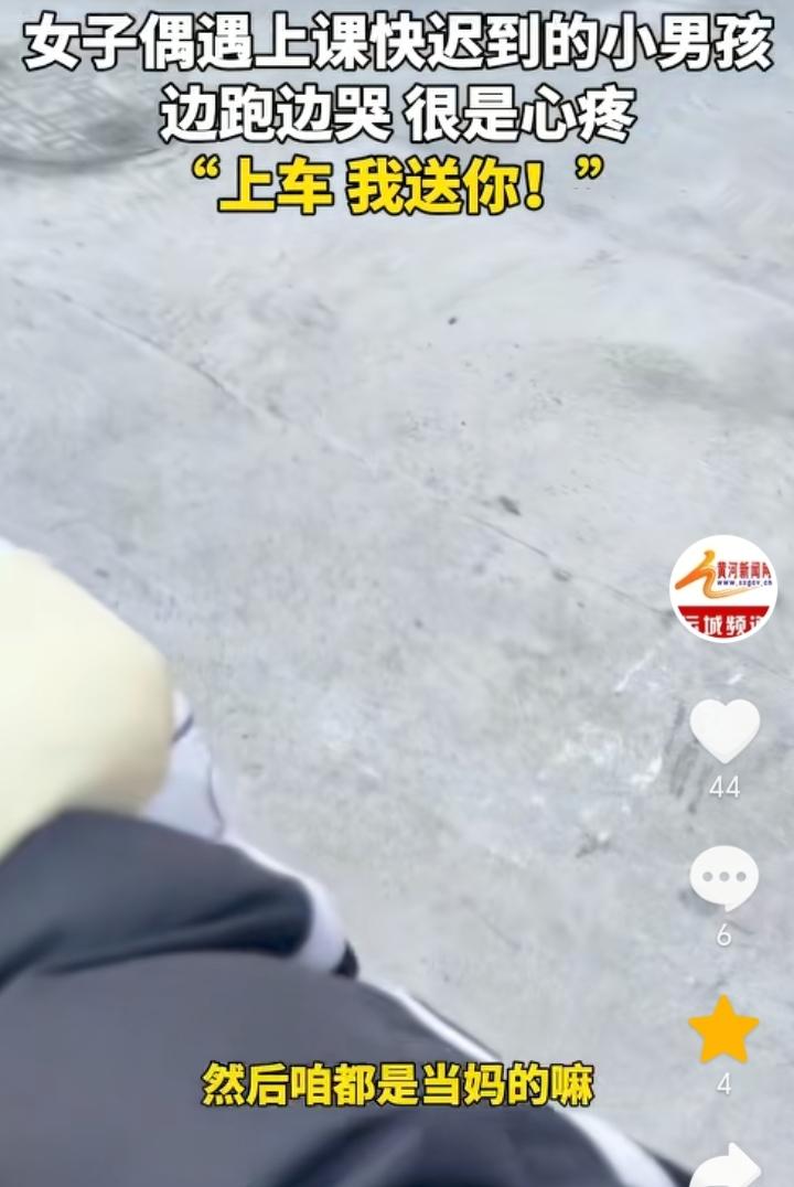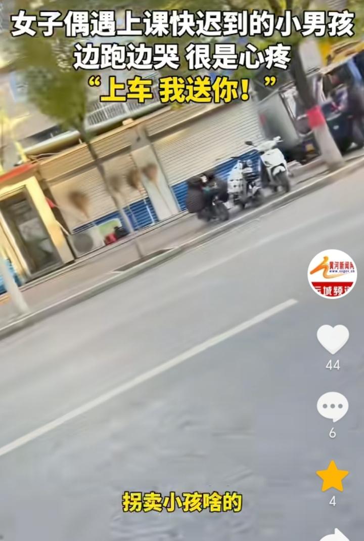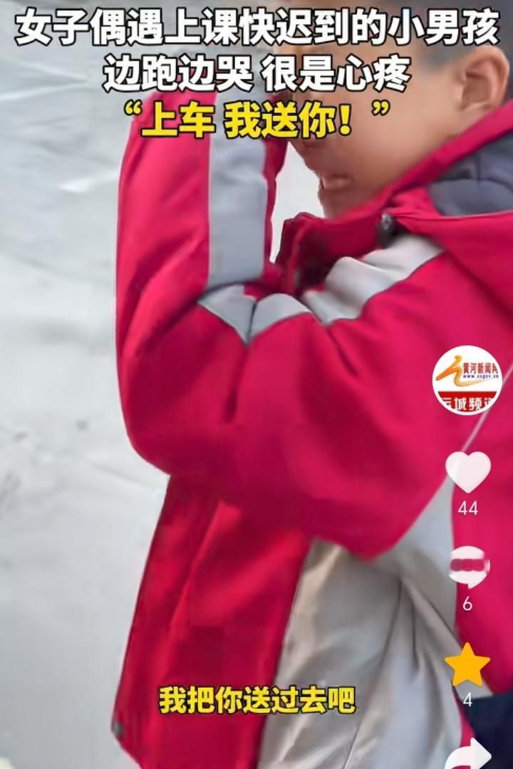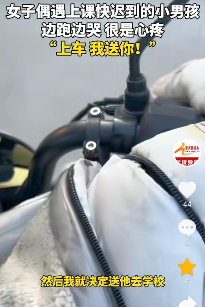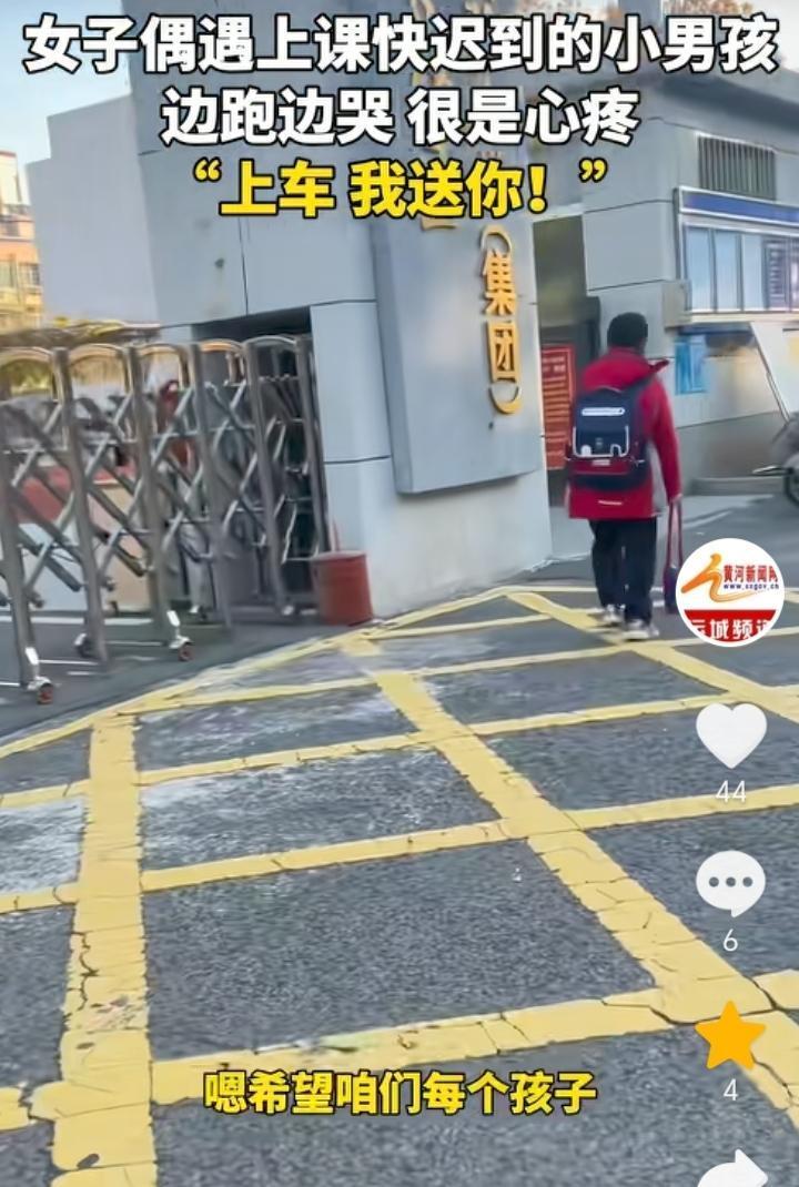 “都是当妈的”!山东泰安,女子骑车送娃上学回家路上遇到一小孩,小孩背上背着装满书的书包,手里还提着一个水壶,一边往学校跑一边哭,女子一看就觉得小孩应该是迟到了,旁边也没有家长跟着书包还那么重,都是当妈的看着不忍心,于是女子上前询问小孩“你是不是上学迟到了?”,得到小孩肯定后,女子让小孩上车直接送小孩去学校。女子表示拍视频的原因是担心别人误会自己是拐卖小孩的,希望每一个孩子都能被这个世界温柔以待。 有可能小孩是经常早上起不来,所以家长专门让他自己去学校迟到一次后长记性,不然也不会让孩子独自背着沉甸甸的书包往学校跑,而且还迟到了,不过这种方式对于孩子来说是比较残酷的,因为小孩上学最害怕的就是迟到,想让孩子早起完全可以换一种方式方法。 女子善良的举动让原本寒冷的早晨变得温暖,一句都是当妈的包含的太多,这也是间接证明了母爱的伟大。