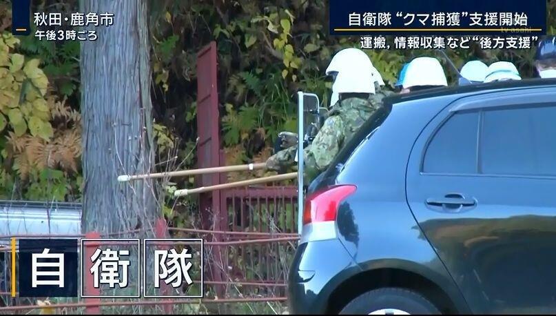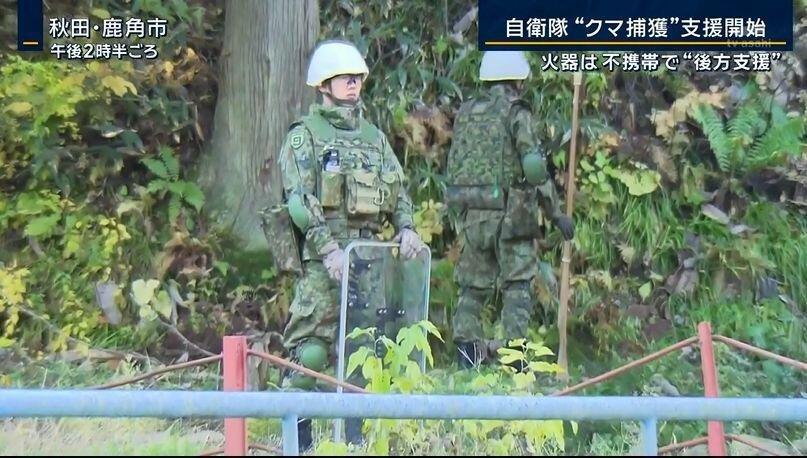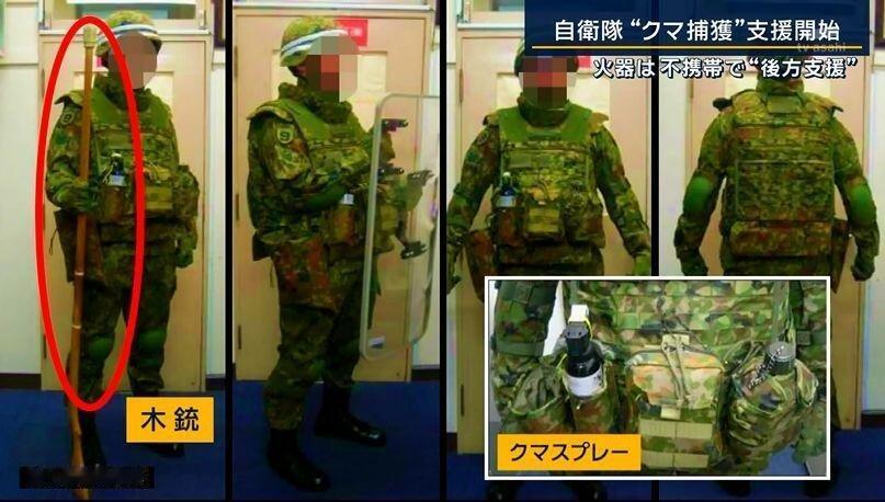 倭国出动自卫队对付熊大熊二,不过就那装备能干的过熊大熊二吗?好歹上个刀嘛,熊怕棍子嘛?样子装的怪像。熊大熊二:“这帮货弄啥哩?看着味还不孬哩”