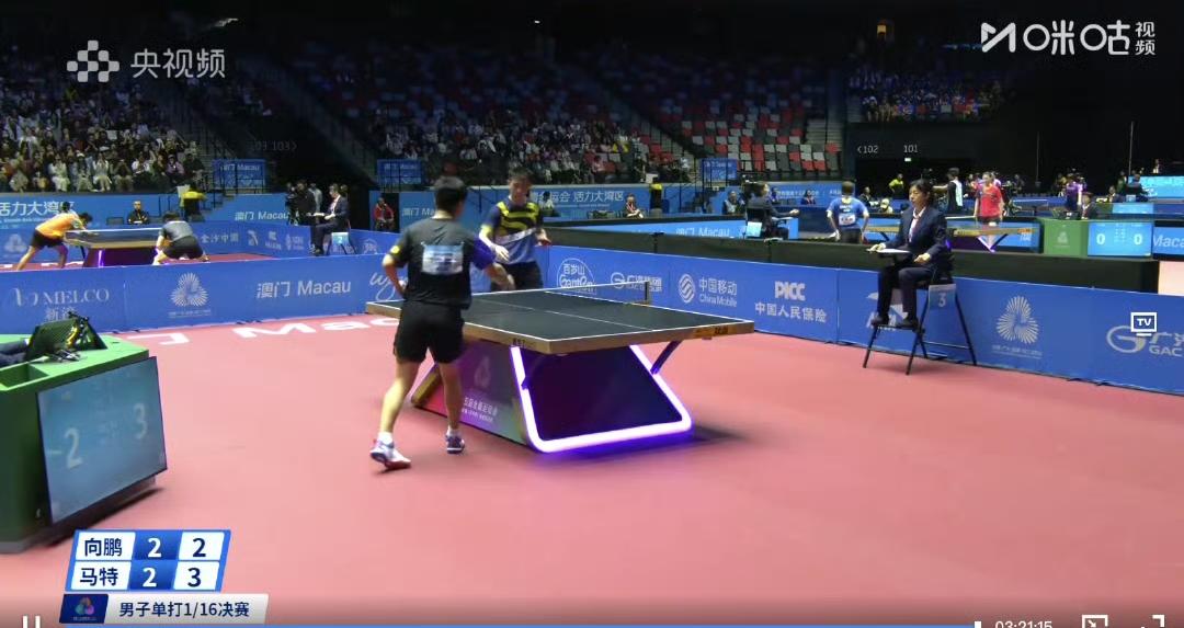 正想说向鹏进步了, 第三局向鹏就被马特扳回了, 前三局向鹏11-6,11-1,10-12领先马特! 第三局在向鹏10-8的局点时,向鹏被逆转了,还浪费了向鹏的暂停机会。 其实在两人的交手记录上,向鹏三胜一负占据优势,这一负就是今年全运会男单资格赛上向鹏迎战马特,3-0输的比较惨,有一局甚至一分未得[捂脸],看来现在向鹏是下了功夫有窍门了。 这是第15届全运会乒乓球男单1/16决赛,评论区继续播报战况哦。