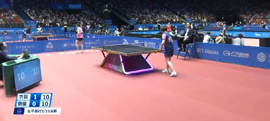 有惊无险,有惊无险, 输了首局的蒯曼连扳三局了[奋斗], 目前前四局齐菲12-10,10-12,6-11,6-11被后来居上蒯曼领先了! 不过蒯曼丢分也丢的太吓人了,一丢就是一串儿分,一直接不好对手直板的旋转。 蒯曼的场外指导是单明杰。 这是第15届全运会乒乓球女单1/16决赛,评论区继续播报战况!