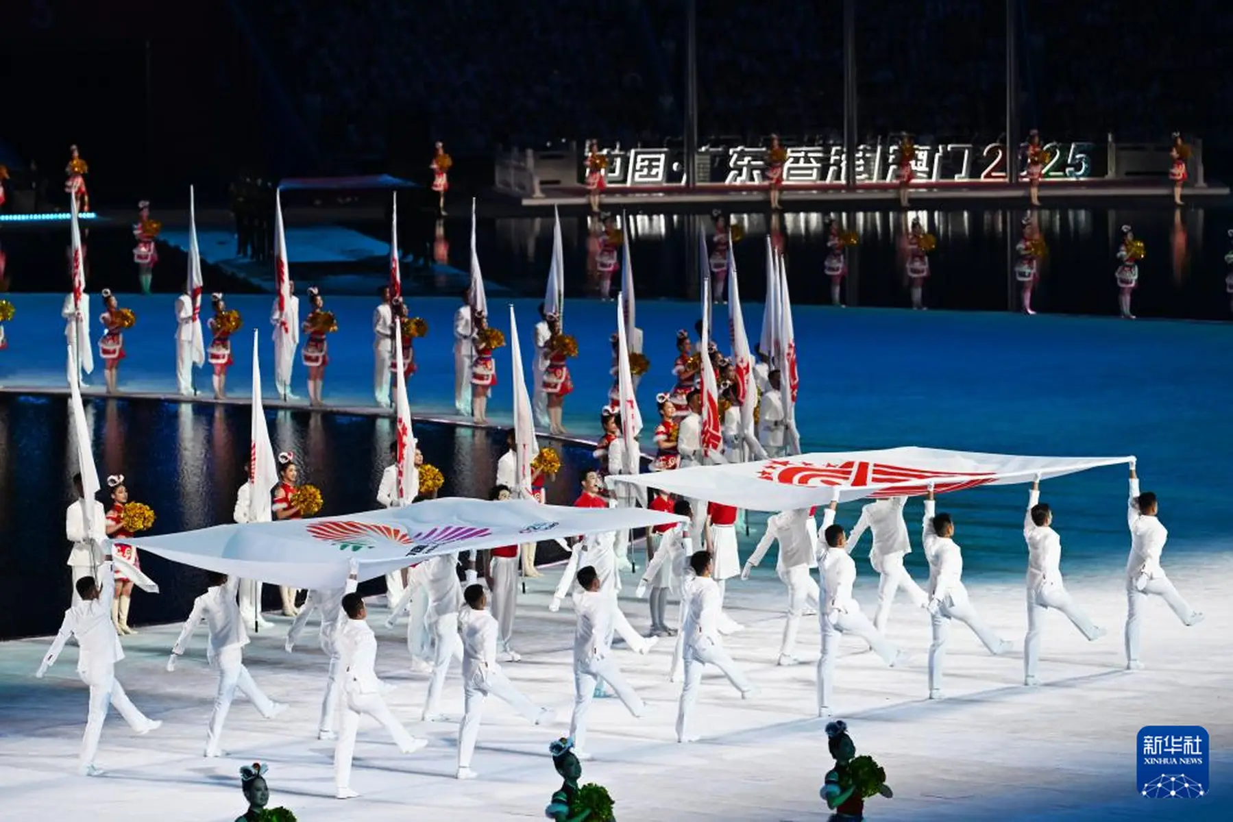来自三地的火炬手共同点燃主火炬,可燃冰火种照亮夜空。周深、单依纯唱响主题曲《天海一心》,刘德华领唱《中国人》掀起大合唱热潮。整场开幕式既是体育与文化的盛宴,更是粤港澳大湾区团结奋进的生动写照。