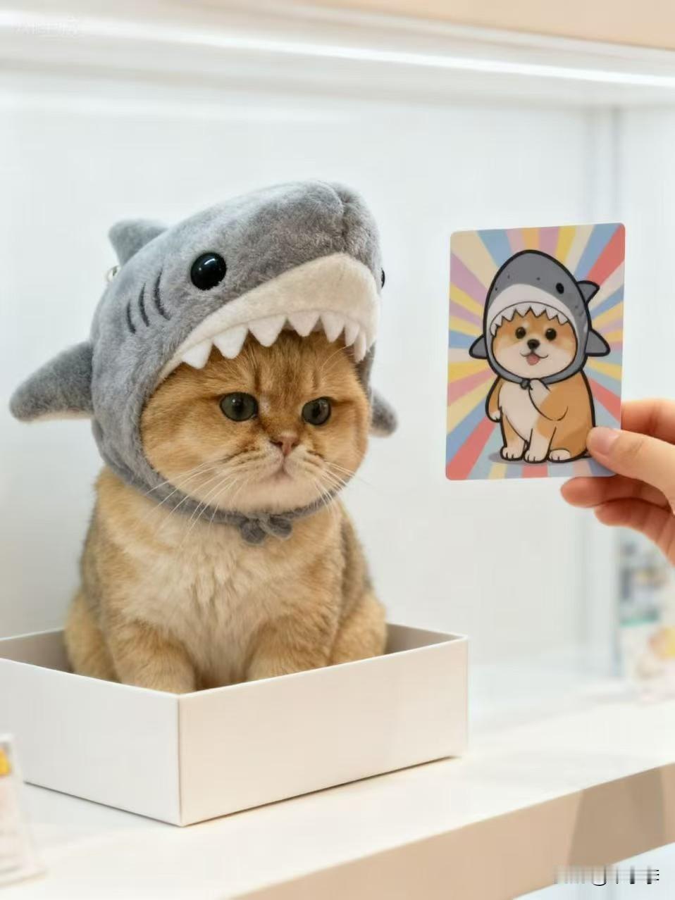 冬日生活打卡季天冷了,给猫猫买了暖和的鲨鱼头套[大笑]