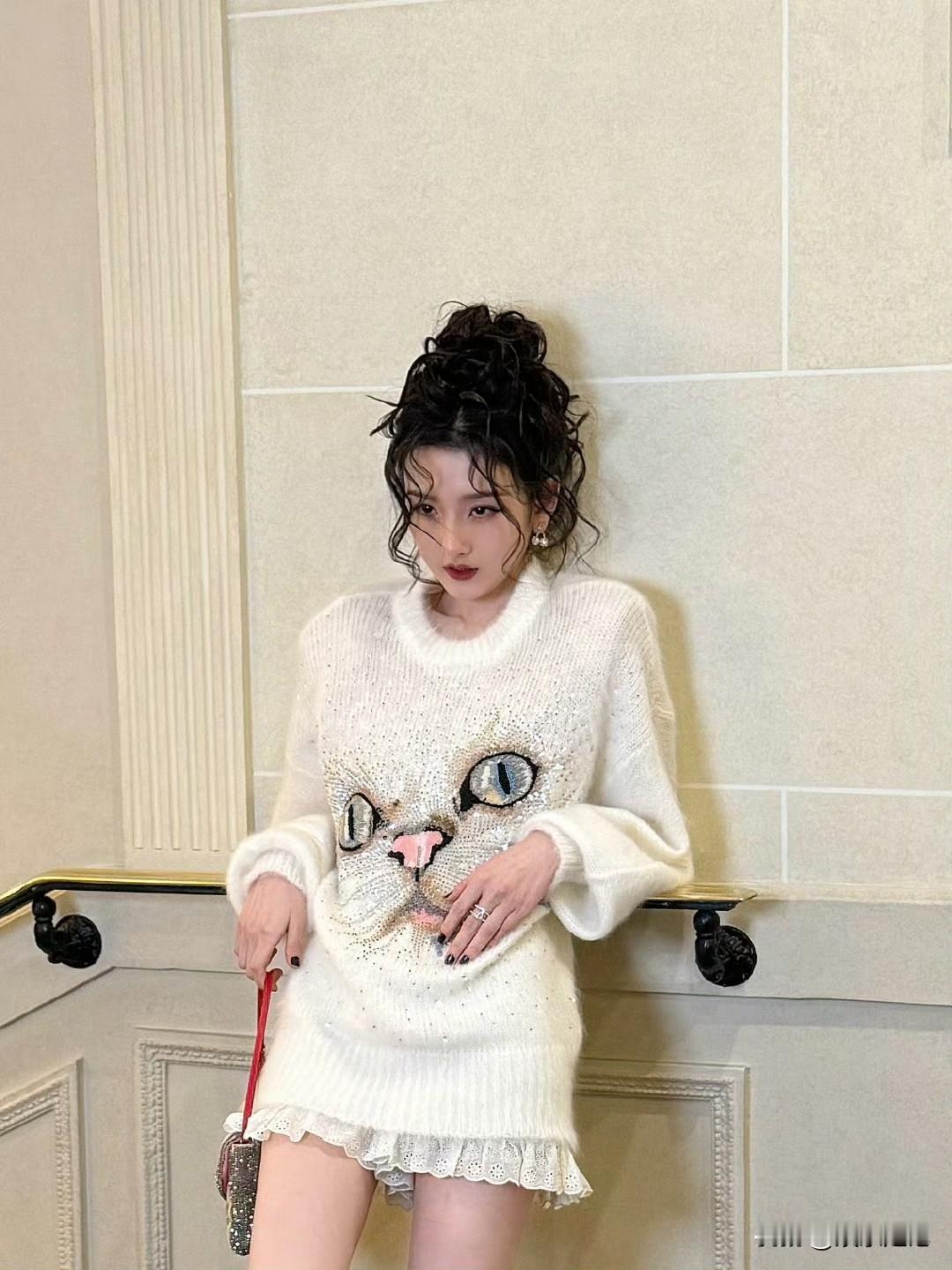 刘亦菲把死亡玫粉穿出了定制款的感觉,这种颜色普通人穿上分分钟黑三度,她居然能穿出