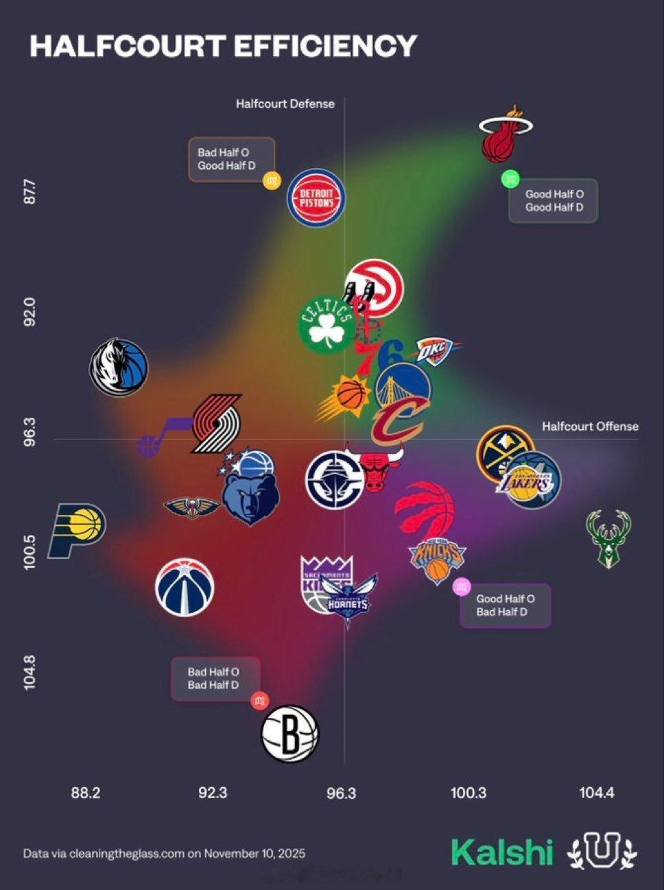热火目前半场防守效率联盟第一,半场进攻效率前五[流鼻血]