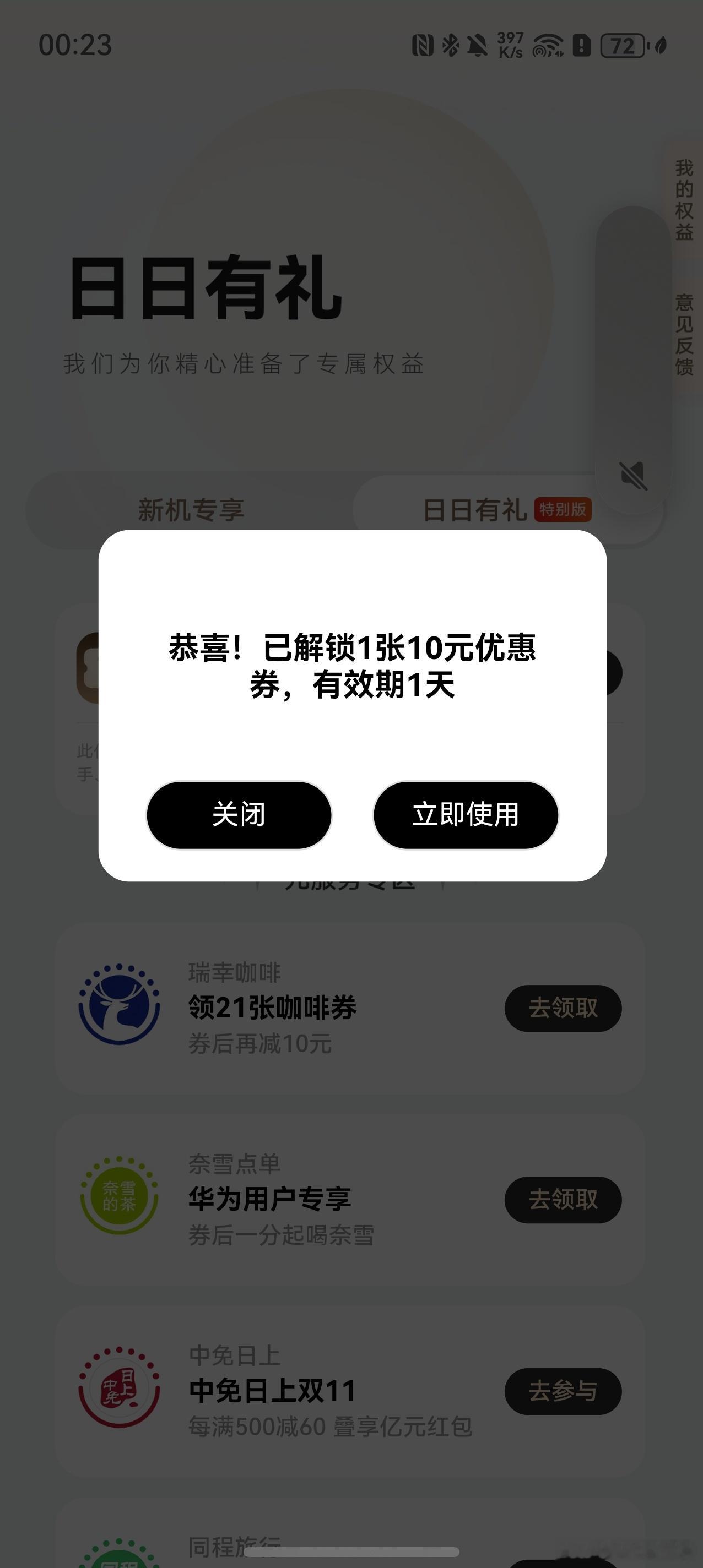 鸿蒙负一屏又又又送10元红包啦!大家赶快前往负一屏领取,可以买杯瑞幸咖啡,之前还有小伙伴说好像还能用在外卖上?[笑而不语][笑而不语]鸿蒙越用越香我的鸿蒙体验华为[超话]