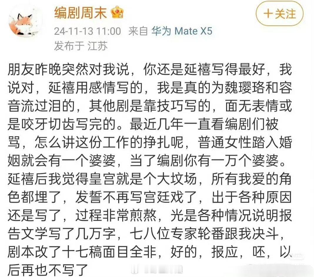 原来延禧攻略的编剧,对于之前电视剧版本魏璎珞最后爱上皇上这个结局,是很不满意的呢,时隔多年才敢于说出来这一个点 ​​​