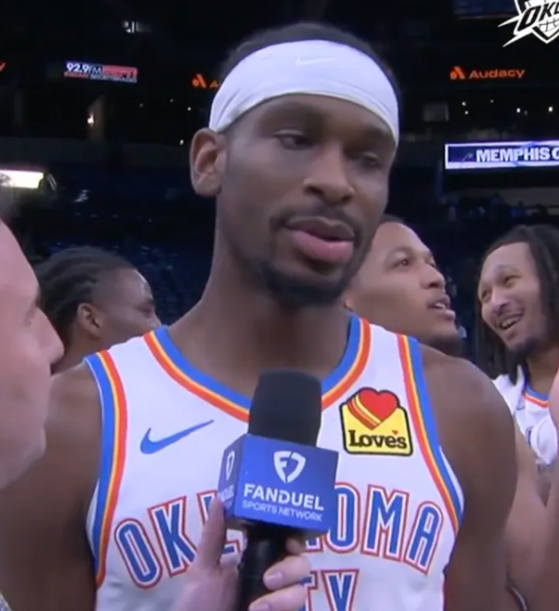 NBA常规赛,雷霆114-100击败灰熊。 赛后雷霆球员谢伊-吉尔杰斯-亚历山大