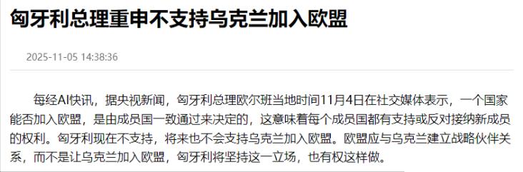 一夜过来,欧盟和乌克兰,包括俄罗斯都沉默了:欧盟将黑山、塞尔维丑、乌克兰等9个国家列入发展库,就在乌克兰信心满满之时,匈牙利总理欧尔班再次重申,不支持乌克兰加入欧盟。 前段时间,欧盟刚把黑山、塞尔维亚、乌克兰等9个国家塞进发展库,说白了就是给这些国家画了张“入盟大饼”,想借着这种方式稳住东欧和巴尔干地区,顺便对冲俄罗斯的影响力。 欧盟扩大事务专员玛尔塔・科斯还特意放话,说扩大是优先任务,要是2026年能完成谈判技术部分,2028年就能迎来新成员。 这话刚落地没几天,匈牙利总理欧尔班就直接掀了桌子,11月4号在社交媒体上明说,现在不支持,将来也不会支持乌克兰入盟,还拿着成员国一致同意的规矩当挡箭牌,强调自己有否决权。 欧盟这时候哪好意思出声,内部早就有“扩大疲劳症”,斯洛文尼亚总理戈洛布都坦言,大多数成员国对扩员压根不感兴趣。克罗地亚总理普连科维奇更直接,怀疑2030年做好接纳新成员的准备这事儿根本不现实,毕竟决策流程和预算这两个核心问题都没解决,大国可不乐意让一堆没多少预算贡献的小国掺和决策。 现在匈牙利直接把反对摆上台面,等于把欧盟的内部矛盾扒光了给外界看,要是欧盟出来辩解,要么得逼着匈牙利让步,可匈牙利手里攥着能源筹码,2024年还是乌克兰最大的境外电力供应国;要么就得承认扩员计划泡汤,这脸可就丢大了。左右为难之下,沉默成了最体面的选择。 乌克兰的沉默更像是被噎住了,之前被列入发展库的时候,基辅那边信心满满,毕竟入盟不仅能拿到欧盟的资金援助,还能在国际上抬升地位。泽连斯基当天就急着呼吁欧尔班转变立场,结果人家反手扔出一堆数据打了他的脸。 欧尔班说俄乌冲突以来,匈牙利接收了1400万乌克兰难民,安置了上万名儿童,还给了2亿欧元人道主义援助,甚至乌克兰用的电力不少都来自匈牙利。更狠的是,他直接点破,乌克兰从欧盟拿的援助里本来就有匈牙利的钱,自己没理由再点头让乌克兰正式入盟。 泽连斯基这时候再跳出来反驳,反而显得理亏,乌克兰现在全靠欧盟输血,要是真跟匈牙利闹僵,万一对方在其他援乌议题上使绊子,损失的还是自己。而且欧盟入盟的硬标准摆在那,法治、反腐败这些事乌克兰压根没达标,之前欧盟就强调过不能走捷径。 欧尔班这一反对,等于给乌克兰的入盟梦泼了盆冷水,再嘴硬只会显得更尴尬,只能憋着不说,等着欧盟内部有人出来调和,可看这架势,短期内没人愿意蹚这浑水。 俄罗斯的沉默则带着点隔岸观火的味道,欧盟搞东扩本来就没安好心,冯德莱恩之前连访西巴尔干国家,明着说要推进扩大,实则是想把这些地区打造成对抗俄罗斯的前沿。现在欧盟自己先乱了阵脚,匈牙利公开唱反调,等于给俄罗斯帮了忙。俄罗斯犯不着跳出来表态,万一开口反而让欧盟暂时放下分歧一致对外,那不就亏了。 再说塞尔维亚这层关系,它既在发展库里,又跟俄罗斯走得近,之前布莱德战略论坛,斯洛文尼亚压根没给塞尔维亚总统武契奇发邀请,塞尔维亚外交部还特地否认求邀请的传闻,吐槽这是干涉内政。 这种内部矛盾正是俄罗斯乐意看到的,巴尔干地区本就是“欧洲火药桶”,欧盟想靠扩员稳住这里,现在反而裂痕更大。俄罗斯安安静静看着就行,反正欧盟的精力都耗在内部扯皮上,对乌援助和东扩计划自然会打折扣,这比自己说十句话都管用。 其实这三方的沉默早有预兆,欧盟扩员喊了二十年,除了克罗地亚2013年成功加入,其他国家大多卡在半路上。北马其顿受阻、波黑面临分裂威胁,这些问题都没解决,又硬塞进来乌克兰这么个还在打仗的国家,本身就不现实。匈牙利不过是把大家都心知肚明的问题摆到了台面上。 欧尔班的底气也不只是否决权,国内95%的受访者都反对乌克兰入盟,民意在那摆着,他没必要为了欧盟牺牲本国利益。而且他提的替代方案,建立战略伙伴关系,听起来还真不是完全不给面子,既没彻底撕破脸,又守住了自己的底线。 乌克兰心里门清,入盟这事儿本就是欧盟画的饼,可现在连饼都要被人抢,只能哑巴吃黄连。俄罗斯则抱着看戏的心态,反正局势朝着对自己有利的方向走,沉默就是最好的表态。这三方跟揣着明白装糊涂似的,谁都不想先开口,生怕先说话就输了气势。