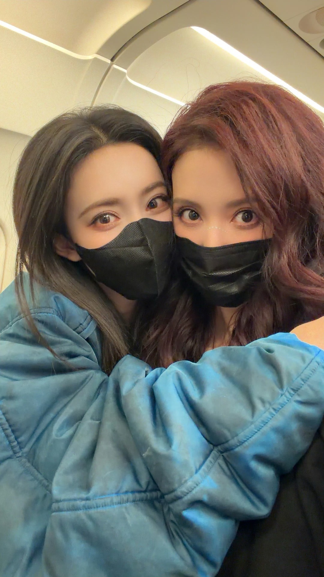孟子义张萌在飞机上偶遇了张萌晒出和孟子义偶遇合影,两个姐姐都戴着黑色口罩,但高颜没有被口罩遮掩住,尤其是孟姐的美颜更是亮眼。