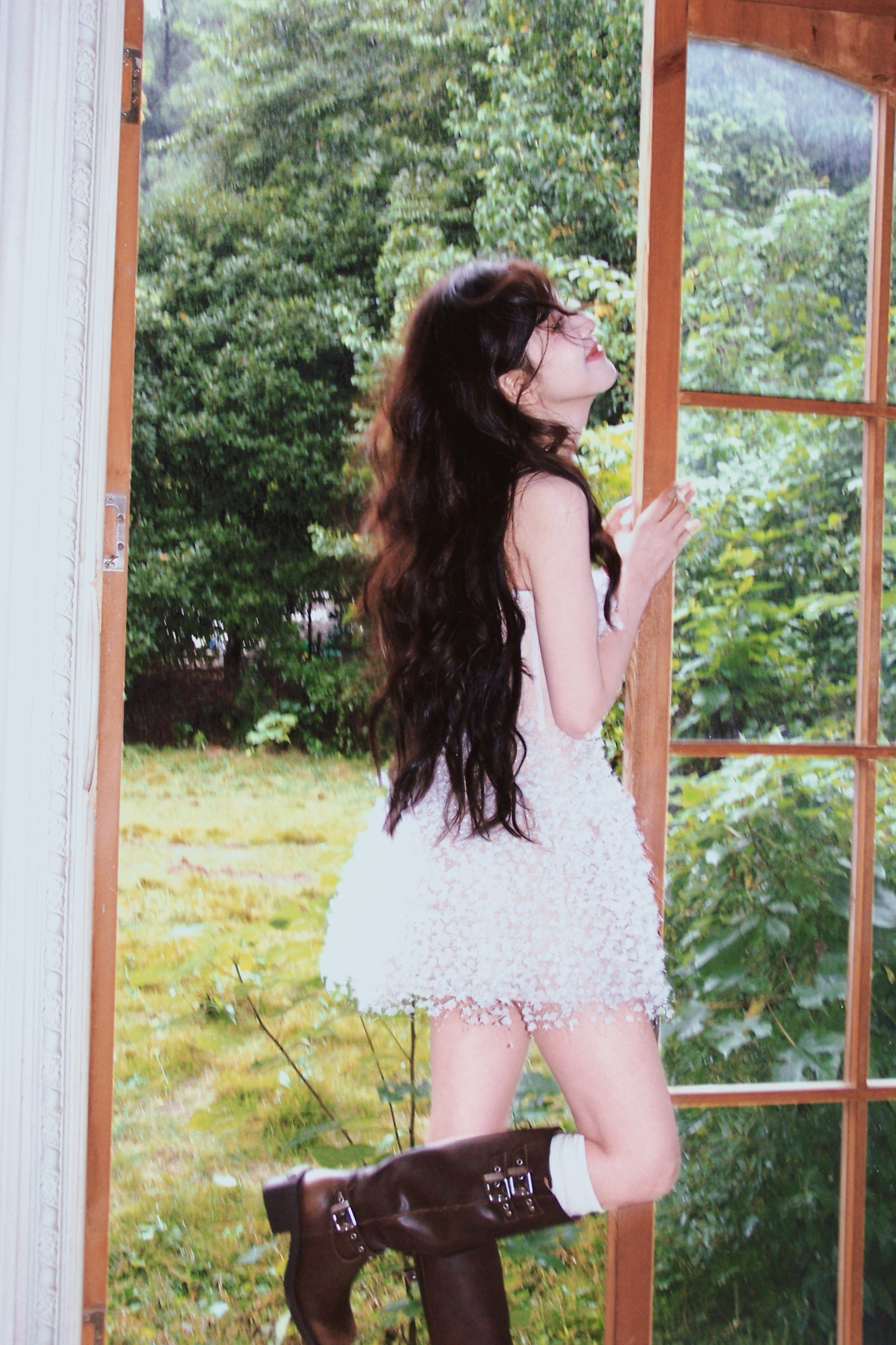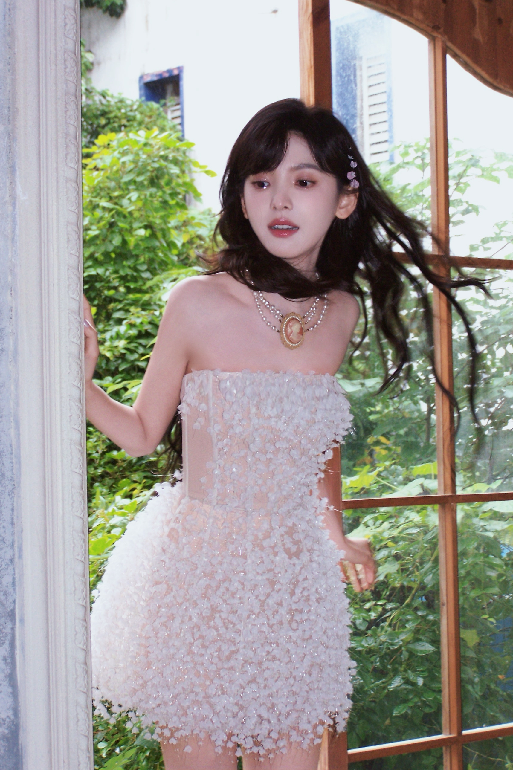 章若楠今日出席湖南卫视疯狂好六夜造型大片,身着Montsand花瓣抹胸短裙搭配长靴,佩戴珍珠项链,甜美又仙气,一整个就很漂亮、很适合哈~