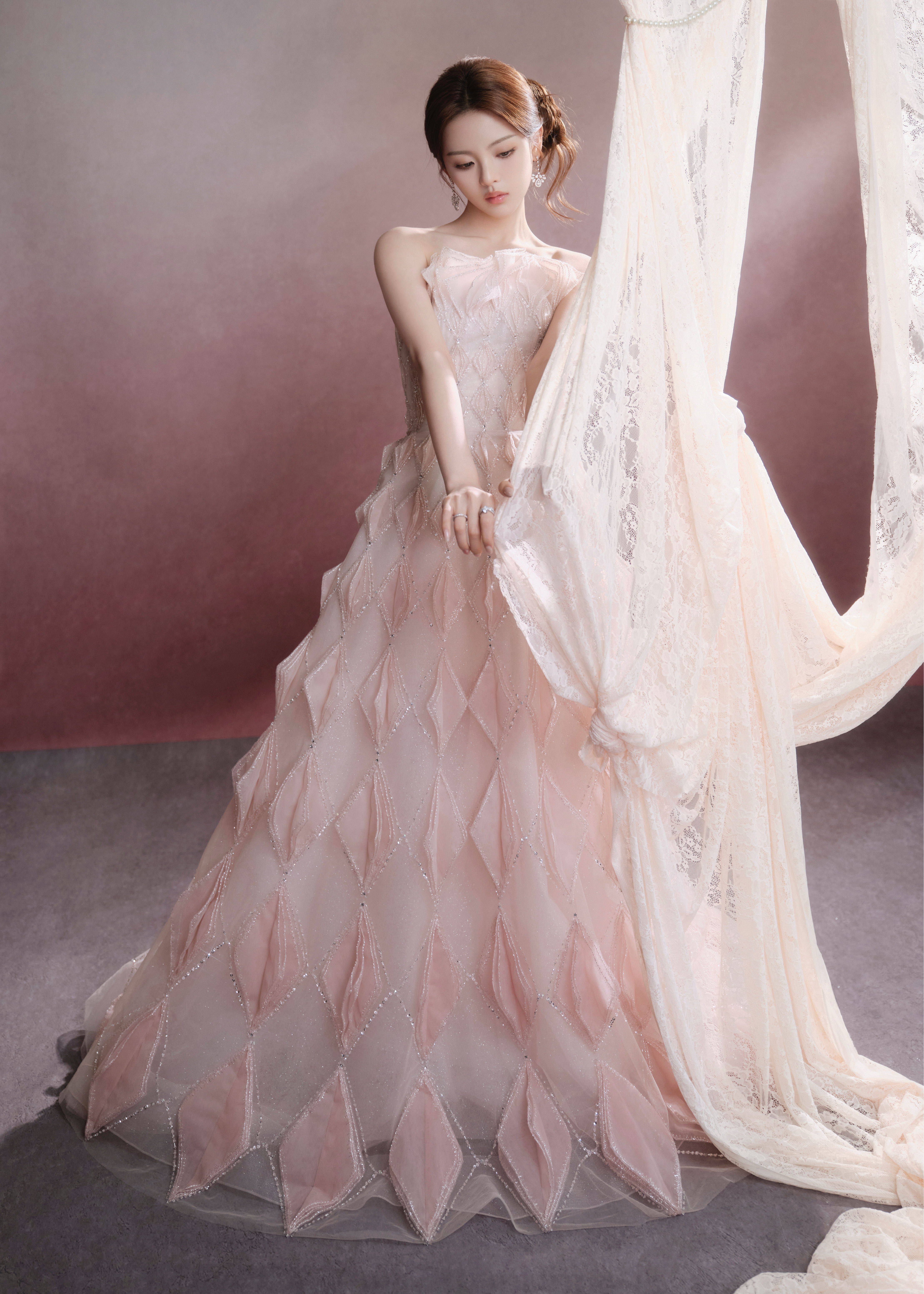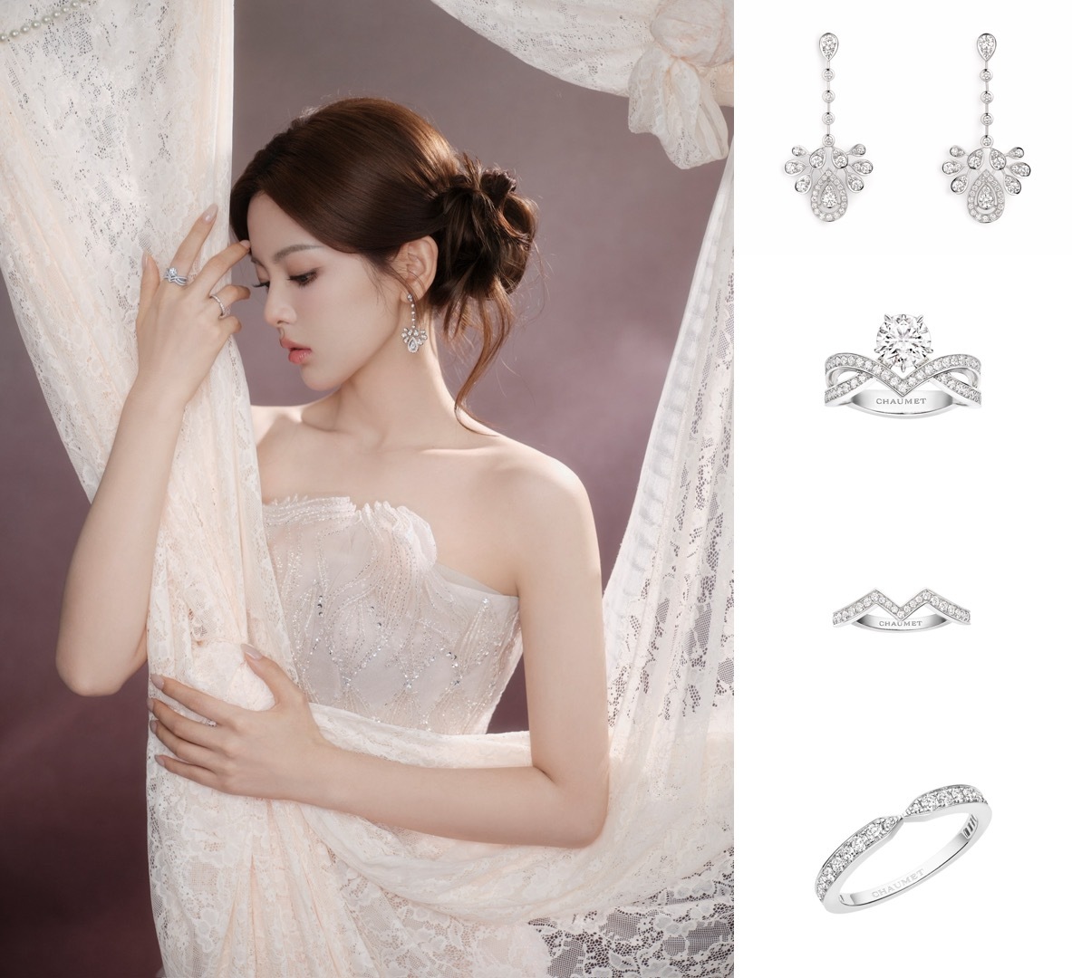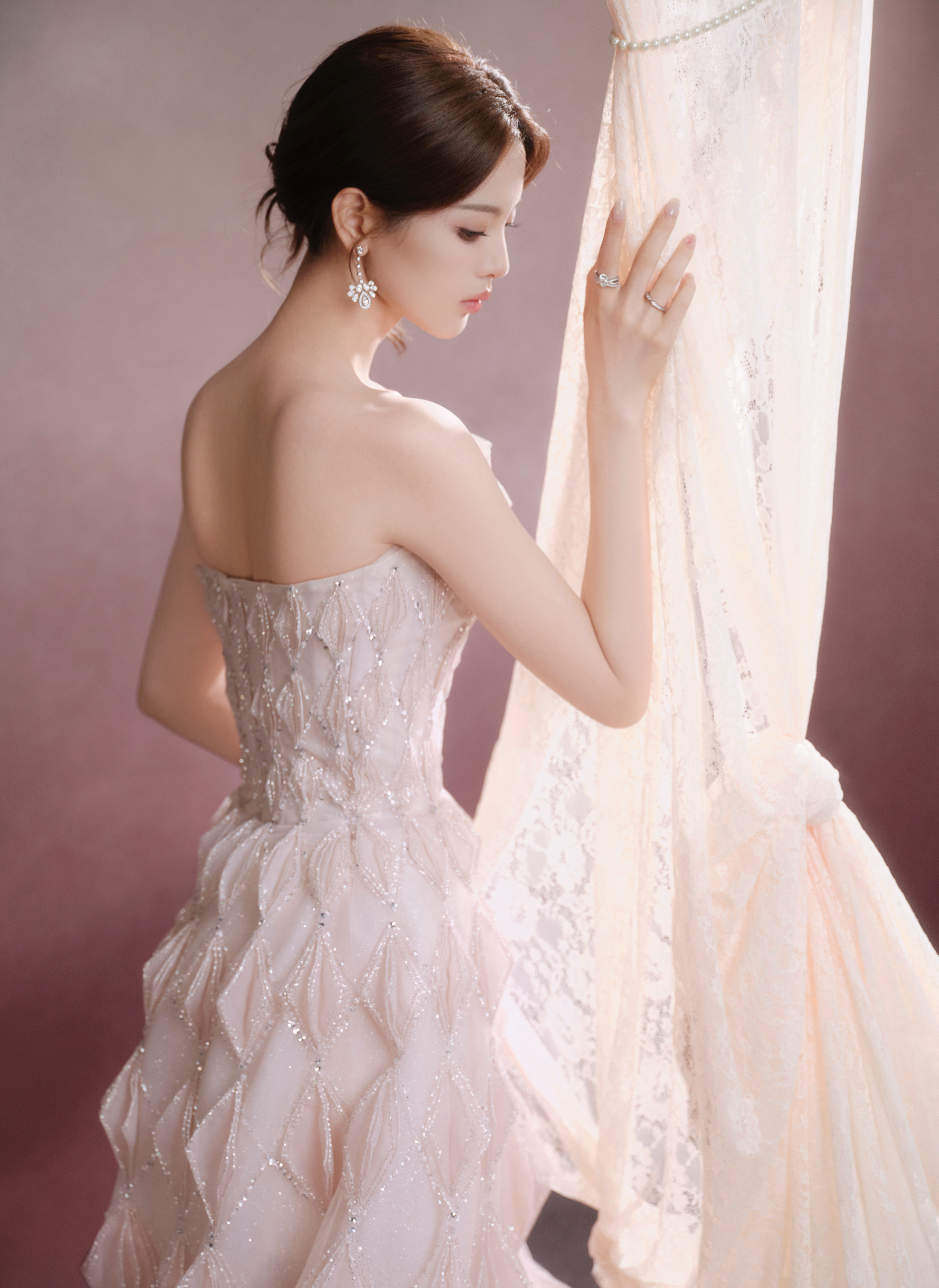 杨超越今日出席合作品牌直播造型大片,身着IVAN YONG 2026春夏系列串珠亮片礼服搭配低盘发,佩戴尚美CHAUMET约瑟芬&加冕系列高级珠宝,漂亮又贵气的超越妹妹~
