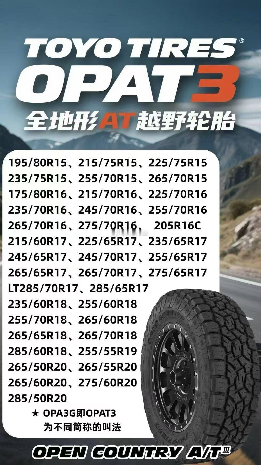 ★OPA3G即OPAT3为不同简称的叫法东洋轮胎 🛞 OPEN COUNTR