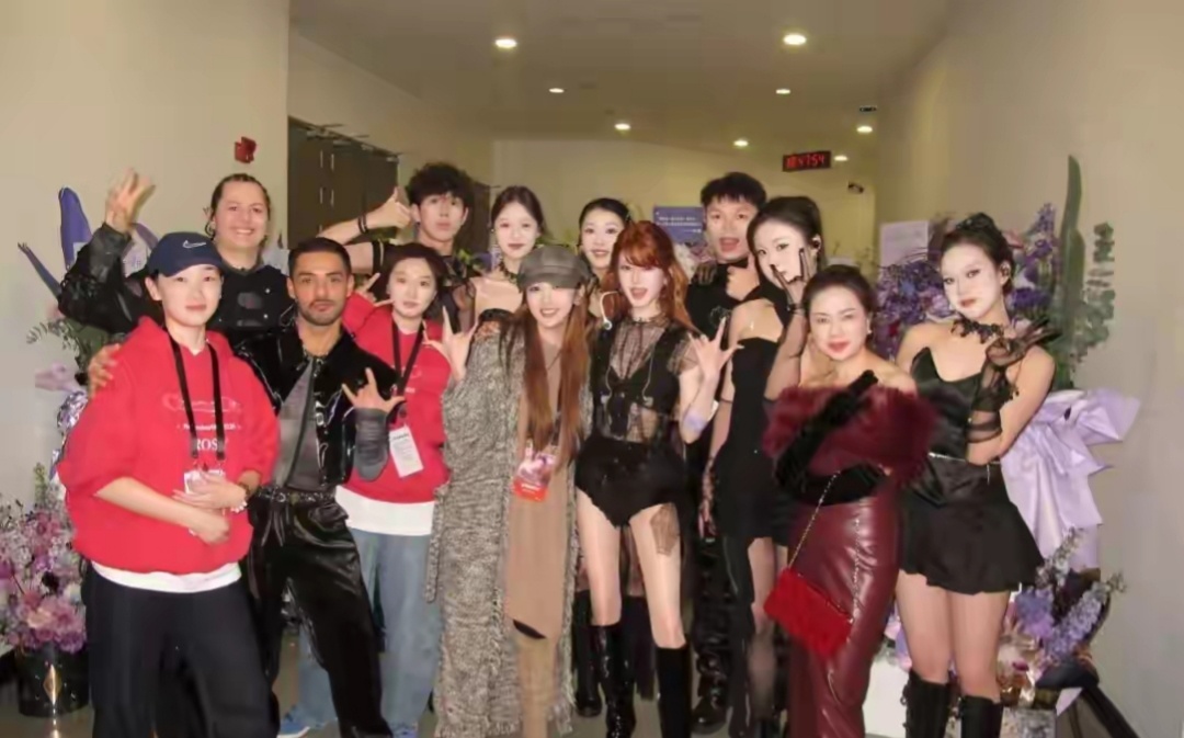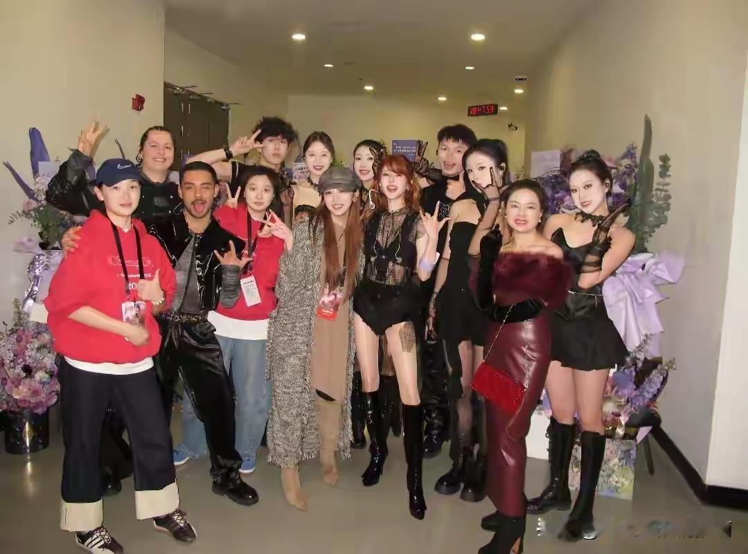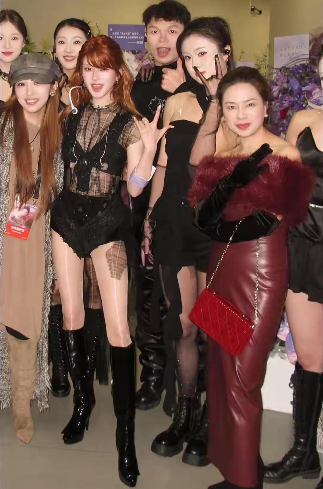 赵露思演唱会后台大合照曝光!一旁的露思妈妈狐领红皮衣太潮了