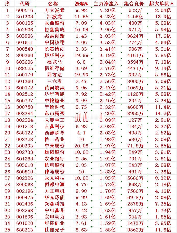 11月11日上午盘,主力趁低位,大幅买入的35名单:
