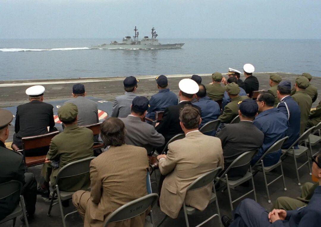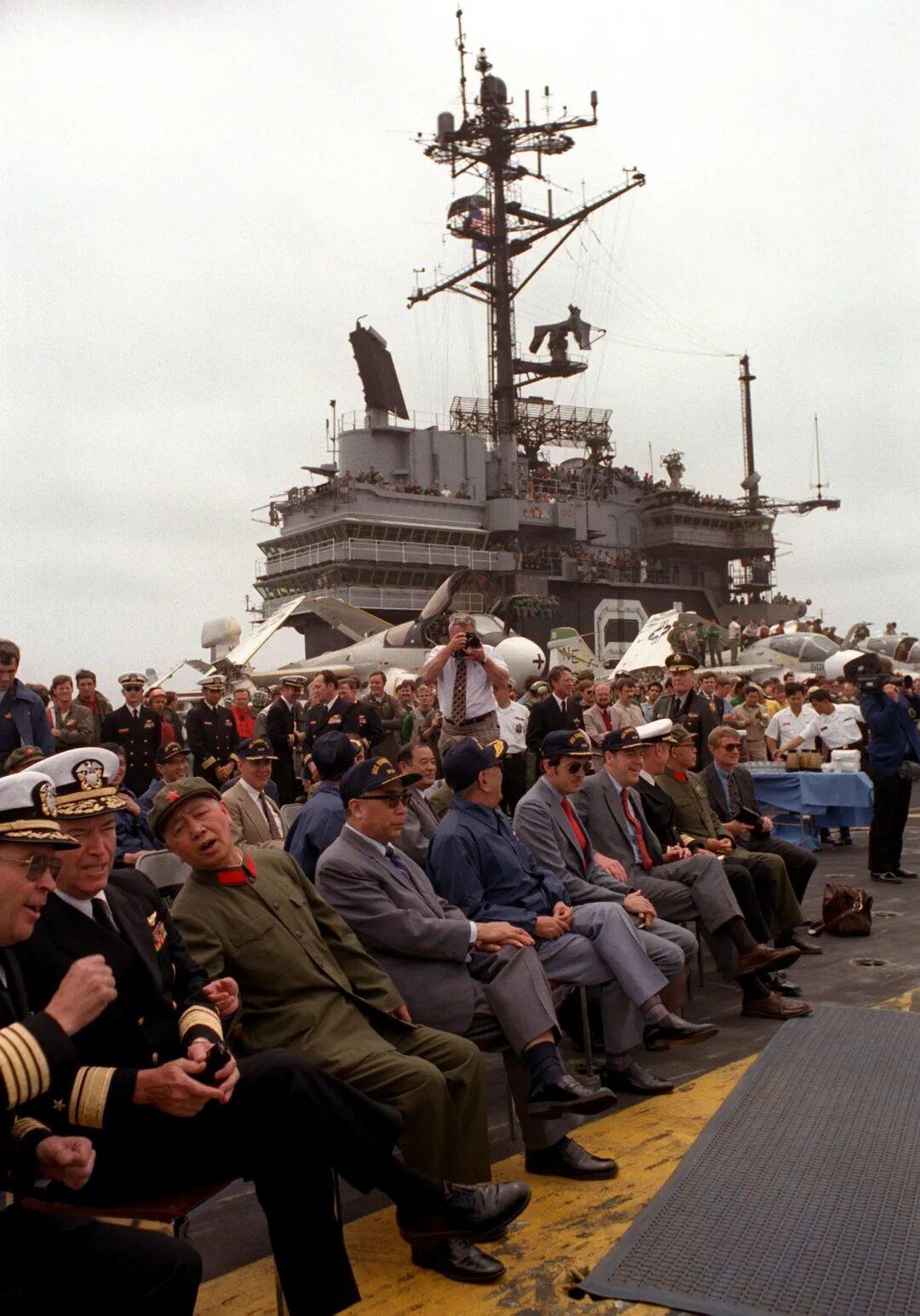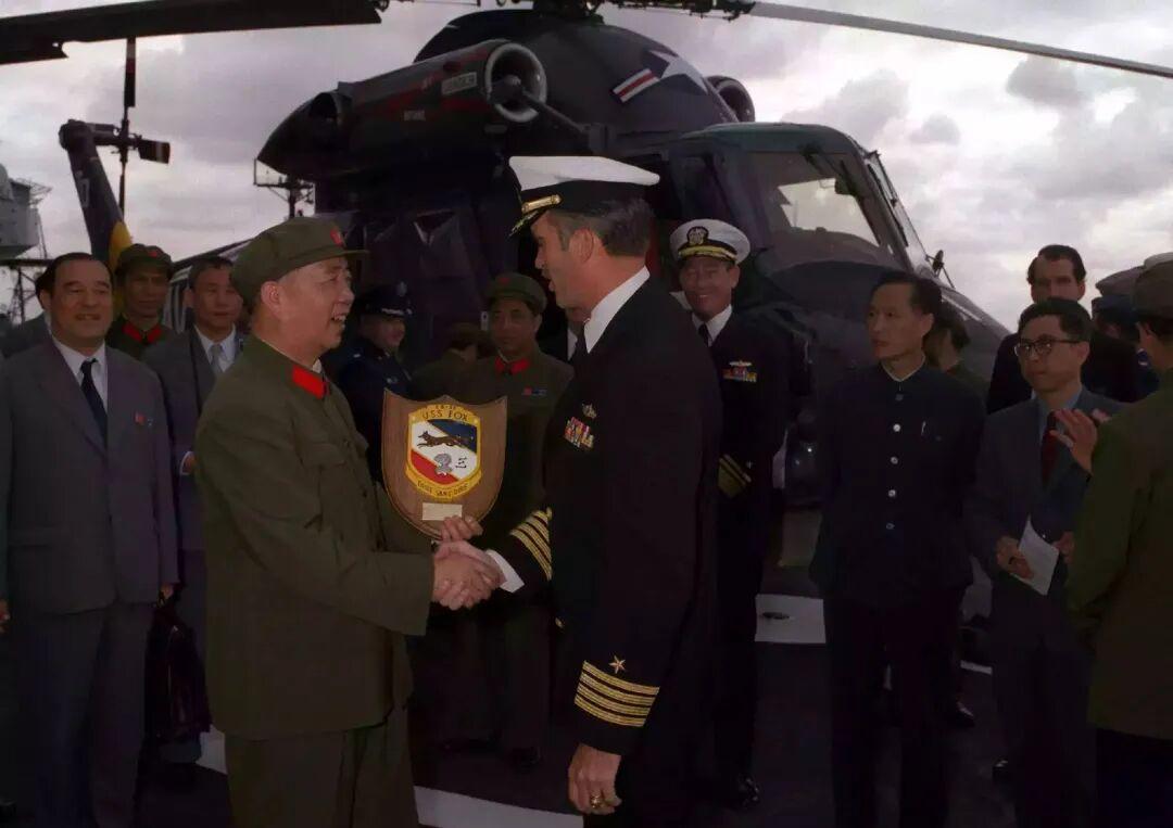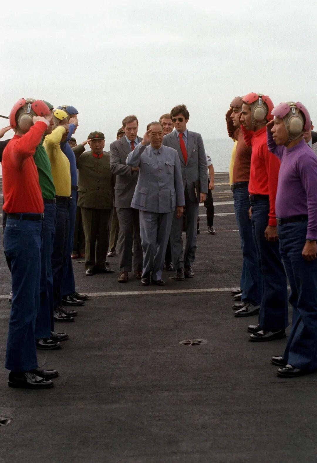 “福建”舰在三亚入列,因为右下角那位拎包的年轻人,这组老照片令人泪目: 1980年5月25日, 在副总参谋长刘华清的陪同下,耿飚率领的军事代表团访问美国,走进美国的五角大楼和海军基地,首次登上美军航母! 这是科技人员和我们人民解放军第一次踏上了航空母舰。 航空母舰强大的规模、宏伟的气势以及兼顾现代化的作战能力在我们解放军心里的震撼久久不能释怀。 整个航母是由上到下十几层组成的,我们将领始终一直坚持一层又一层的爬楼梯进行了参观考察的全过程,只用了1天的时间,他们一口气连续不断的参观了3艘美国主力军舰。 刘华清在回忆录里说,1980年5月参观美国“小鹰”号航空母舰,“上舰后,其规模气势和作战能力,给我留下极深印象。” 1982年,刘华清被任命为海军司令员。 他说:“以往,我只是从‘外围’观察和思考航母问题。1982年我当了海军司令员,航空母舰在我心头的分量,自然大不相同了。”