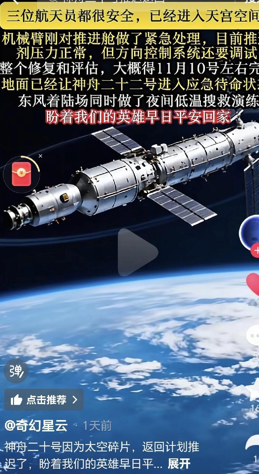 神舟二十号推迟返航引发不少关注!航天员在太空多待一天,到底得花多少钱? 有个新情况,神舟二十号的返回计划临时调整后,两位航天员要在空间站里多待上几天。大家心里最惦记的就是:在太空多住一天,到底要花多少钱? 专家们算了笔账,国际空间站每个人每天的花费差不多要500万。咱们国家的空间站虽然成本能低些,但像水电、氧气、吃的喝的这些,价格都高得吓人。要说最费钱的,还得是那些科研设备,光是一台精密的实验仪器,价格就得上亿。 有意思的是,咱们的航天员却一点不慌。他们在空间站里种种菜、养养蚕,还和神舟二十一号的同事们在太空打起了乒乓球。地面指挥中心还笑着说:"这简直是把出差过成了度假。" 其实啊,航天任务里推迟返航是常有的事。想当年杨利伟在返回前就等了一整天,就是为了避开内蒙古那边的沙尘暴天气。航天的前辈们常说:"稳妥可比速度重要多啦。" 你觉得呢?要是给你500万,你愿不愿意去太空住上一天?