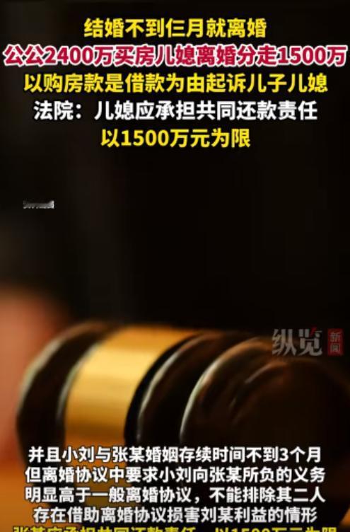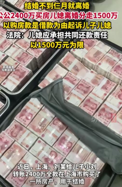 “姜还是老的辣!”上海,父亲花2400万给儿子买婚房,3个月不到小两口就离婚,女方分走1500万!但父亲技高一筹,买房时留了一手,状告两人还钱!法院:女方应承担共同还债责任,以1500万为限! 上海内环一套 2400 万的婚房,最终让相恋七年的情侣反目成仇。 没人能想到,压垮这段感情的,除了柴米油盐的磨合,还有一张五年前写下的借条。 小刘(化名)和小张(化名)是大学同学,从青涩校园走到职场打拼,七年感情一直被朋友当成模范。 谈婚论嫁时,小张提出想在上海有个属于自己的家,这想法在上海再普遍不过。 《上海婚姻家庭蓝皮书》里明确提到,超 72% 的上海青年都觉得,婚前有房直接影响婚姻稳不稳定。 可 2400 万的总价,让刚工作没几年的小刘犯了难。 58 岁的刘大爷看儿子焦虑,干脆拿出自己一辈子的积蓄,足足 1500 万。 他白手起家做制造业,深知赚钱不易,特意让儿子写了张借条,当时谁也没把这当回事。 房子买完没多久,小两口就闪婚了。 可恋爱时的甜蜜,很快被生活习惯的差异磨得没了踪影。 一个讲究秩序爱干净,一个随性散漫不拘小节。 一个沉默内敛不爱说话,一个直爽外向藏不住情绪,原本能包容的小问题,慢慢变成了争吵的导火索。 民政部的数据很直观,全国离婚原因里,“生活习惯不合” 占比超 40%,比婚外情、家庭暴力都要多。 一次因为家务的争吵,彻底点燃了矛盾,小张直接提出了离婚。 小刘念着七年的感情,心里还有愧疚,主动提出给 1500 万补偿款。 这笔钱很快被小张取走,之后她在社交平台晒旅行、晒奢侈品,日子过得十分潇洒。 而小刘却陷入了情绪低谷,只能搬回父母家休整。 这事过去三年,刘大爷整理旧物时偶然翻出那张借条,才知道儿子在离婚时给了这么大额的补偿。 他当即决定维权,把小张告上了法院。 法院审理后认定,购房款转账记录、借条、结婚登记时间紧紧相连,房产本质就是为婚姻服务的。 小张作为 1500 万出资的直接受益者,理应承担共同还债的责任,而且要以她实际获益的额度为限。 其实这类纠纷近年越来越多,中国裁判文书网显示,2023 年涉及 “父母出资购房” 的离婚财产案,比五年前增长了 40% 还多。 法院判案有个很实在的原则,谁受益谁承担责任,谁出钱谁享有权利。 有律师特意提醒,父母给子女大额资金买房,光写借条还不够,最好注明是 “购房专用”,转账时也要备注清楚用途。 没有书面凭证的话,很多父母的辛苦钱,都会被认定为夫妻共同财产分割。 网上对此事的看法两极分化,有人说刘大爷 “老谋深算”,做事太精明。 也有人感叹,七年的深厚感情,最终还是败给了现实。 但在高房价的现代都市里,婚姻可以讲感情,可财产关系真不能含糊。 刘大爷的做法不是算计,也不是不信任。 而是给辛苦攒下的家底,设置了一道最低限度的保障。 婚姻能好聚好散,可长辈一辈子的积蓄,没理由白白流失。 提前留痕、讲清财产归属,比事后撕破脸争吵,要现实得多,也体面得多。 对此,你有什么看法呢? 信息来源: 纵览新闻