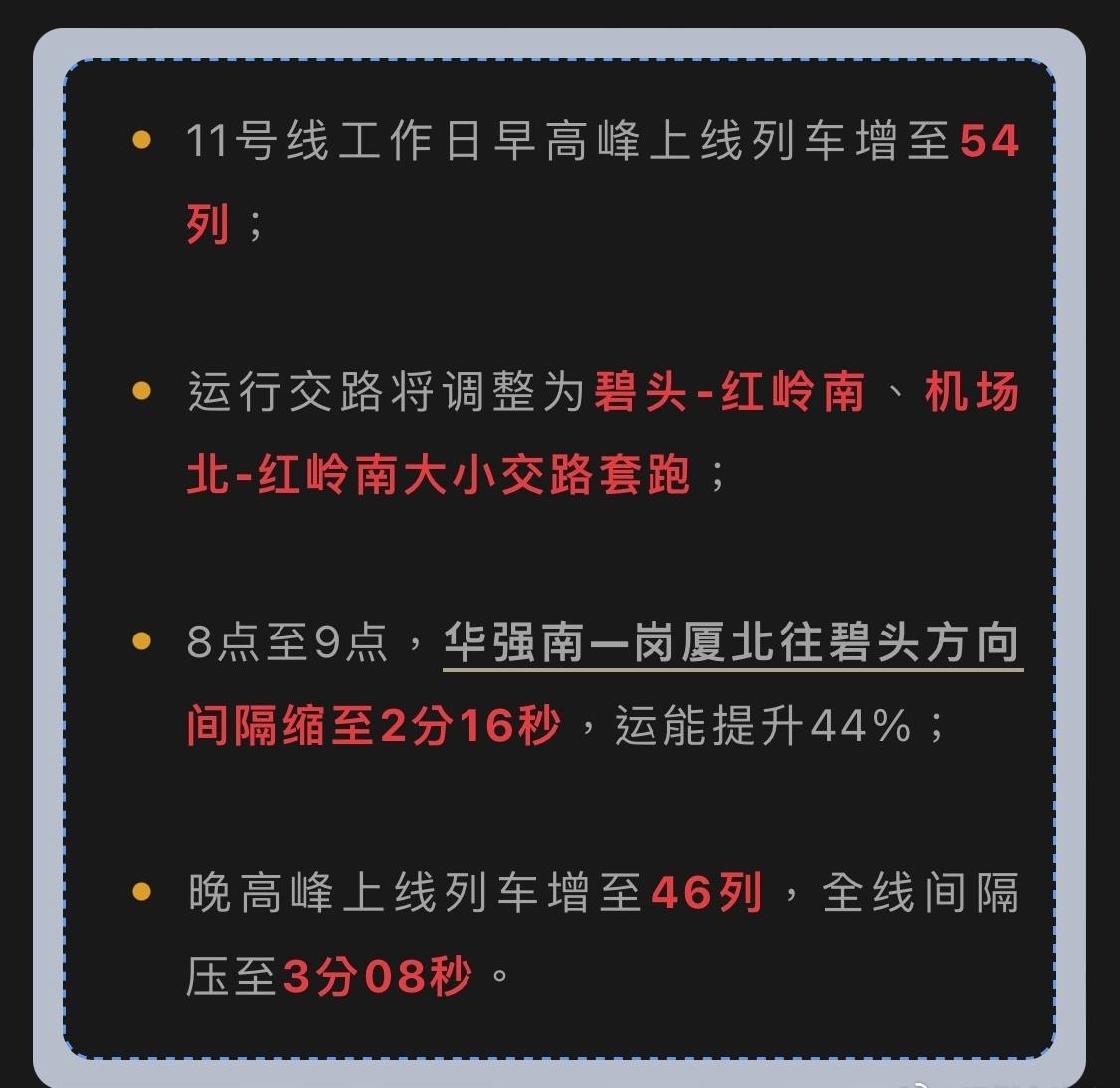 【深圳地铁新线进入开通倒计时 通勤又要提速了!】自11月8日起,深圳地铁5号线西延段、11号线二期红岭南段已正式进入“跑图”试运行阶段,深圳人的日常出行即将开启新模式! 5号线西延段加载三座新站:湖贝站、东门站、大剧院站,串联罗湖核心区,换乘1、2号线更方便。11号线二期红岭南段也将实现华强南到红岭南1站1区间直达! 试运行期间首末班车有微调,小伙伴们出行请留意公告及站台显示屏信息哦~