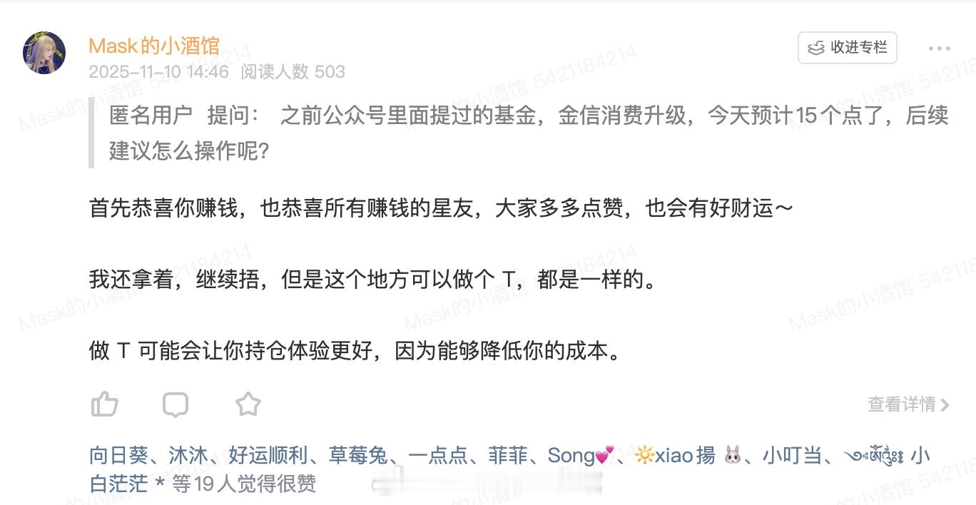 昨天消费大涨,尤其是白酒,不知道大家赚钱了没。我目前场外接近4个点,场内接近10个点的样子:白酒的每一笔都在文章中说了,前几天粉丝怨气最大的时候我也说:白酒会涨的。11月2号发的文,到了11月10号,白酒就出现了远古巨阳。除了白酒,很多的消费涨得也很好,比如旅游,现在也有粉丝转了16个点了,旅游这里说一下,16个点可以卖出一部分,旅游涨跌都很大,止盈一部分是没有错的:当然,金信消费可以继续拿着,星友的金信消费升级15个点了,我是继续捂,但是持有的各位可以做个T,比如止盈个10%,15%的样子,做低自己的成本才更能拿得住。今天继续来说说白酒的事情。很多人不知道,科技已经完成了它的历史使命。该涨的都涨过了,现在就是高位横盘磨人,既赚不到钱,未来还埋着雷。但这个时候散户最容易犯的错误就来了。一只科技股从300块涨到1500块,涨了5倍。在1500块的高点你不敢买,觉得太贵了。等它跌到1200块,你反而觉得便宜了,价格锚定效应作怪,觉得捡到了大便宜,梭哈重仓。结果呢?成了这轮牛市最惨的那批人。市场最狠的地方就在这儿。你追着热点买,永远买在山顶;等你割肉了,那个板块说不定就起飞了。资金已经在悄悄换仓了,从科技流向化工,流向有色,也流向了被骂了三年的消费。消费这几年一直被唱衰,但这次真的不一样了。先看收入。2025年前三季度,全国居民人均可支配收入32509元,实际增长5.2%。收入在增长,消费才有底气。社会消费品零售总额达到365877亿元,同比增长4.5%。别小看这4.5%,这是在去年低基数上的增长,而且是实打实的数据。再看价格。10月份CPI由降转涨,同比上涨0.2%,核心CPI连续六个月扩大涨幅。通缩预期在扭转,这是个非常积极的信号。价格开始回升,意味着需求在回暖。最关键的是政策。2025年我们的工作报告把"大力提振消费"列为头等大事,中办、国办印发了《提振消费专项行动方案》,部署7大行动、30条举措。今年安排超长期特别国债3000亿元支持消费品以旧换新,规模比去年翻了一倍。这不是喊口号,是真金白银往里砸。政策的支持、收入的增长、信心的修复,这是消费复苏的底层逻辑。从历史看,每次消费板块跌到极致,后面都会有一波像样的反弹。2012年塑化剂危机后是这样,2018年去杠杆后也是这样。这次不会例外。消费要复苏,白酒也会复苏。白酒板块当前市盈率约20倍,茅台估值从70倍回落到21倍。这种下跌不是企业出了问题,而是市场情绪把它砸到了地板上。更夸张的是机构持仓:2024年底白酒板块在主动型基金持仓中占比4.11%,较2020年峰值期的10.12%下降超59%。到2025年二季度,占比降到了2.11%。机构已经把白酒减到了极致。没有人还想继续卖了,因为再卖就没了。当所有人都卖光的时候,往往就是反转的时候。而且现在监管出手了,要求消费主题基金风格回归。这意味着什么?意味着几百亿的资金必须回流到消费板块,不管基金经理愿不愿意。这是被动的、强制的买盘,比主动买入还要猛。很多人说年轻人不喝白酒了,白酒没前途了。但这话十年前就有人说,二十年前也有人说。结果呢?茅台从几十块涨到两千多。问题不在于年轻人喝不喝,而在于酒精的社交属性、文化属性不会消失。具体哪个品牌能活下来,那是另一回事。但白酒这个品类,不会消失。2025年上半年,高端白酒营收同比增长6.2%和3.4%。贵州茅台营收910.94亿元,净利润454.03亿元,分别增长9.16%和8.89%。龙头依然坚挺,基本盘还在,只是市场情绪太差了。那又有人说了,2024年,规模以上白酒企业产量同比下降1.8%,这是怎么回事呢?原因就是统计口径变了。白酒这个行业有2016年是改变了统计口径的,统计局后面只统计规模以上酒企,即2000万营业额的酒企产销量才被统计,这也是为啥2016年以后白酒断崖式下跌的原因之一,大量的小酒企产销量是没被统计进去的。这就导致了很多人以讹传讹,说白酒消费量下滑过快。但是现在小酒企统计不到了,确实也没有详实的数据去反击这个说法,这就成为了糊涂账。另外2023年统计局又修改标准了,5000万营业额以上的酒企才会被纳入统计。这就导致规模以上的酒企产销量更低了。但销售收入和利润总额延续上涨趋势。这就是为什么白酒消费量看起来下滑的原因。其实投资最难的地方,就是要和自己的本能对着干。科技涨的时候,所有人都在讲AI改变世界;白酒跌的时候,所有人都在讲年轻人不喝酒。但真正的机会往往藏在共识的反面。当所有人都觉得白酒没希望的时候,恰恰是最有希望的时候。现在市场对白酒的情绪,就是恐惧到了极点——跌破合理估值,跌破历史低位,跌破了很多人的心理防线。但恐惧就是机会。等到业绩真正反转的时候,股价早就涨上去了。市场永远是提前反应的。等你看到业绩好转了再去买,那就是追高。估值就像钟摆,摆得越偏,回归的力量就越强。现在消费板块的估值已经偏到了极致,钟摆已经摆不动了,接下来只能往回摆。科技的狂欢结束了,消费的春天正在来临。白酒品牌会不会消失?会,某些品牌可能会消失,50年之后,可能有新的企业来代替茅台,代替五粮液。但白酒这个行业会消失吗?一定不会。只要人性不变,只要社交需求还在,白酒就会以某种形式存在下去。这是白酒投资最核心的逻辑,也是消费板块最坚实的底层支撑。中国白酒行业市场规模超过7500亿元,这是一个足够大的池子。现在的白酒,像极了2012年