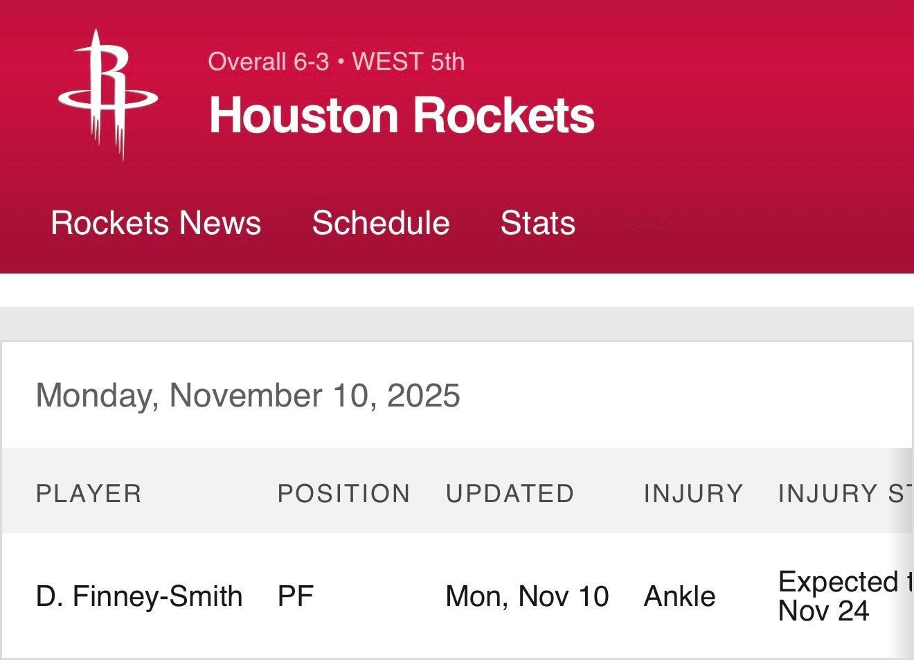 cbssports:芬尼史密斯 - 预计将至少缺席至11月24日