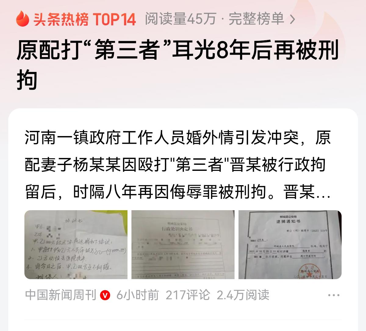 意思是原配不能打“小三”咯, 打完不仅要赔偿, 还要坐牢! 不仅要坐牢, 时隔8年后, 人家不解气, 一哭二闹三上吊, 然后你还得再次被关咯? 这是什么逻辑? 完全颠覆我的认知! 如果小三得不到惩罚, 反而是原配的不对, 那以后婚姻还有什么保障? 本来现在结婚率就低了, 这是要倒反天罡啊小三 婚外情小三 婚姻小三插足 !