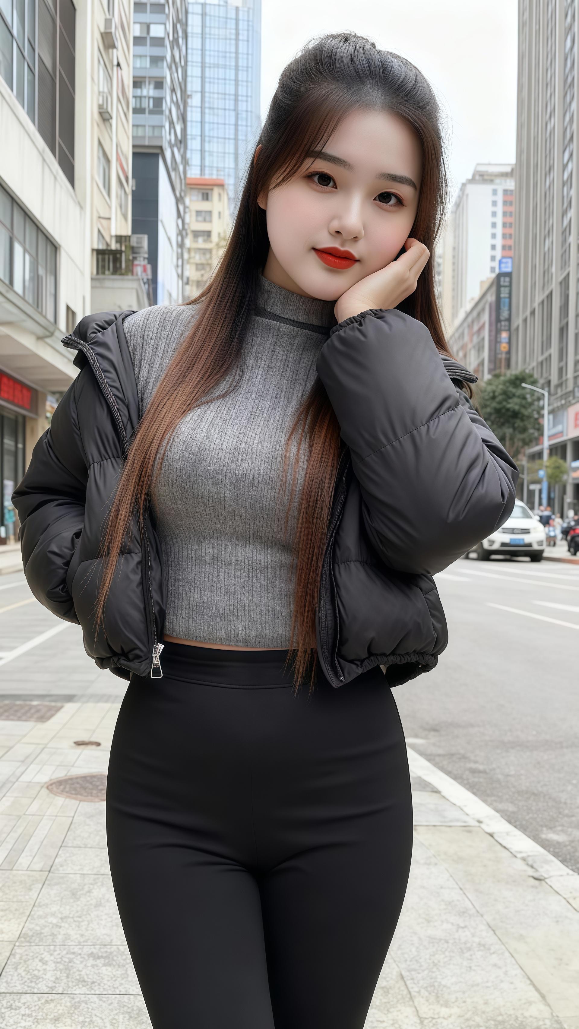 街拍小姐姐穿搭 女神范 好身材好气质 紧身牛仔裤 山里姑娘