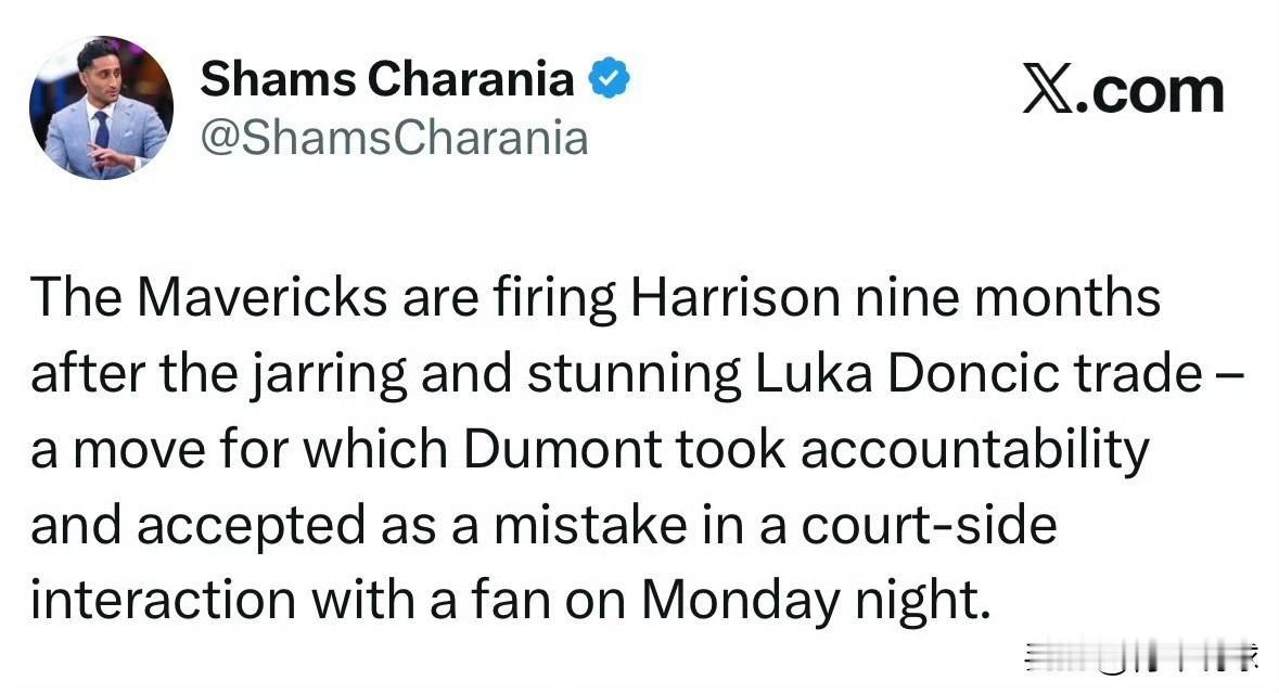 独行侠队老板认错了! 据权威记者Shams报道:独行侠队将在今天的会议中正式宣布解雇总经理尼克-哈里森。 此外,独行侠队老板杜蒙特主动承担了责任,他在今天与球迷的互动中明确表示交易东契奇是错误的决定。然而事实已经发生无可挽回,他希望球队和球迷都需要向前看,自己将继续打造一支充满竞争力的球队。 想要老板认识到错误并不容易,杜蒙特还是非常有魄力的。当然,尼克-哈里森也并不是替罪羊,因为是他向老板提出了这个错误的建议,在交易发生后球队的走向与他的蓝图规划大相径庭,作为职业经理人,他被解雇一点都不冤。