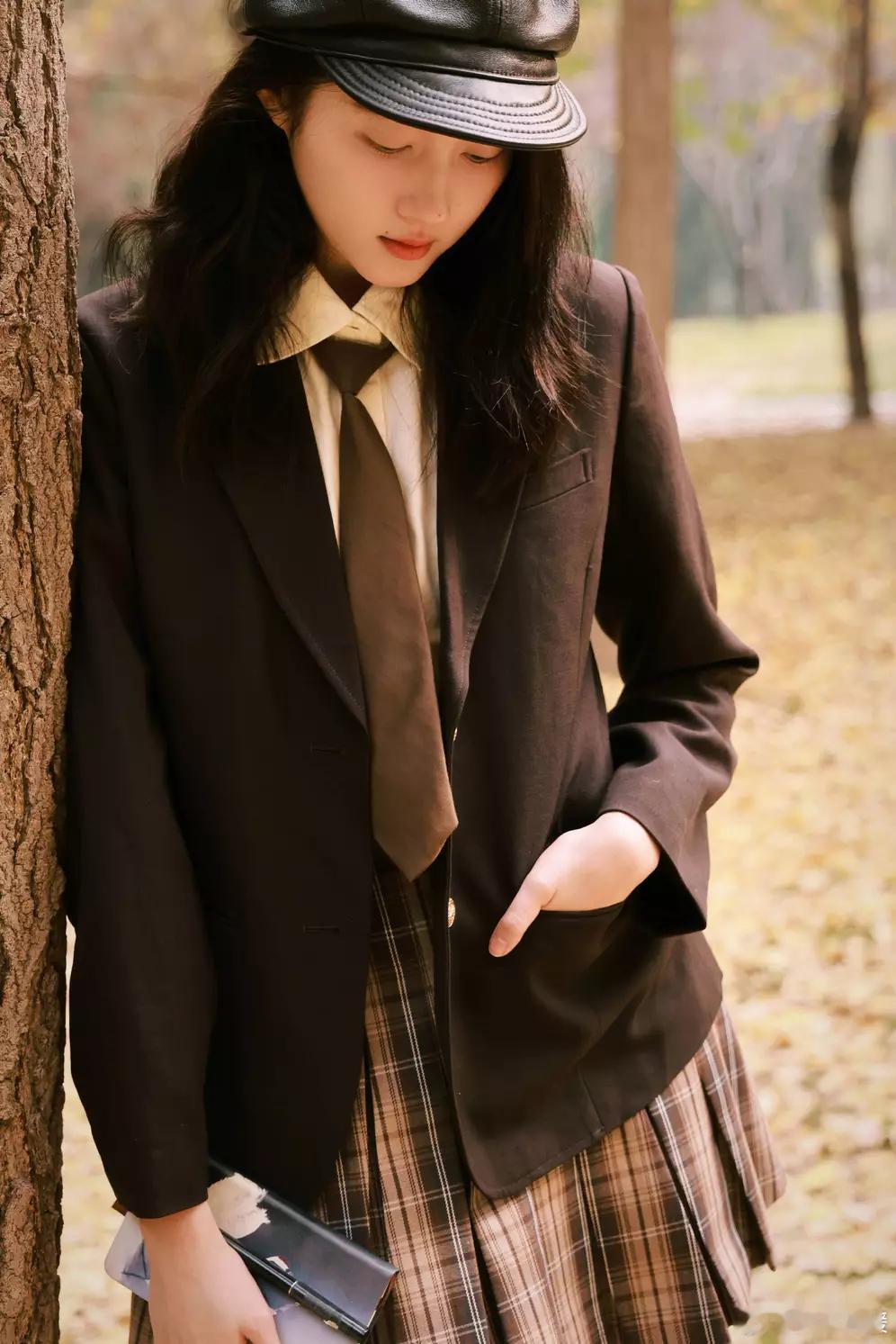 关晓彤晒秋日氛围感美照!学院复古风穿搭超养眼