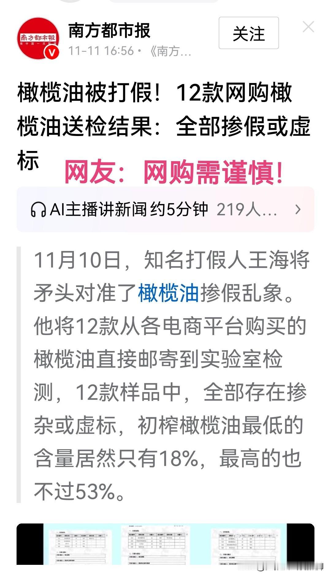 爱吃橄榄油的破大防了!网购12款橄榄油全部掺假而且这12款橄榄油还是来自不同的电商平台 电商平台和监管部门等一定要切实履行好自己的职责,对于上架的所有商品尤其是食品类商品,一定要加强监管,不能让那些坑骗消费者的违法情况继续发生下去了。你经常在网上购买橄榄油吗? 你问我答晒图笔记大赛