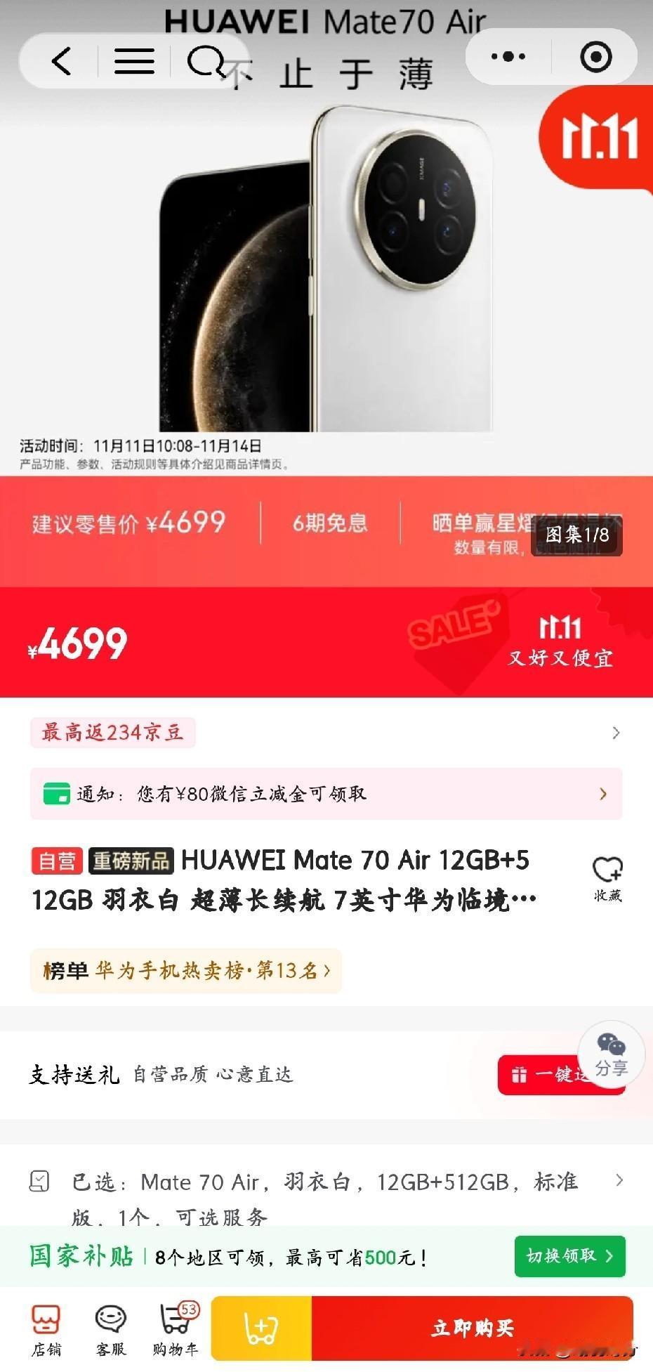 华为mate70air开售后一直显示有货,有爆冷风险 很多人可能不知道开售时间,但是华为也做了长时间的预热,但是热度确实没有起来,同时因为是mate70,让消费者失去了一定的购买欲望,好在价格比较合适,后续应会有不错的销量。mate70