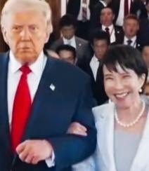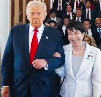 巴特策策格和高市早苗两人的姿势挺默契啊! 两人和不同的人站一起,竟然都选择了一样的姿势! 两人的脸上还都带有笑容!