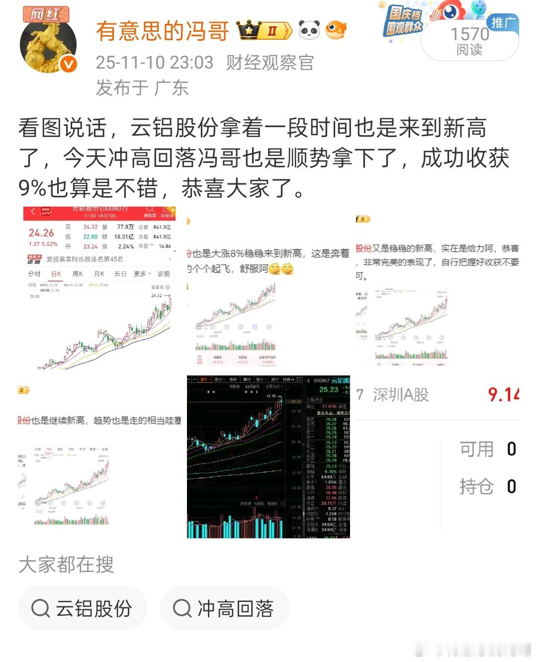 云铝股份这趋势无敌,虽然冯哥已经止盈了,但不妨碍它今天继续新高,这一波上来确实厉害,今天继续调仓布局