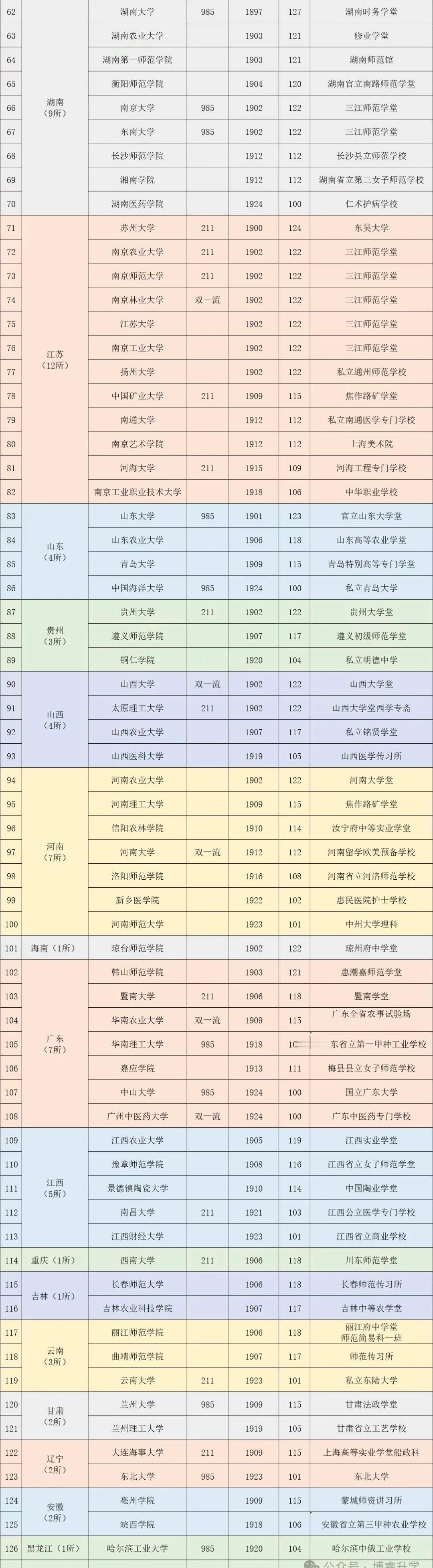 那些历史超过百年的大学高校盘点 以创办现代教育为起点,除战争和特殊时期外办学从未间断,按此标准统计我国办学历史超过百年的高校共有127所。这些高校界中的“老字号”,大多拥有深厚的办学底蕴和优秀的传统沿革,都可谓是清末民初时现代教育探索的先行者。今天我们就来盘点一下这些拥有百年历史的高校 我的目标大学 大学 百年高校 梦想的大学 高校 高考志愿填报 高考报考