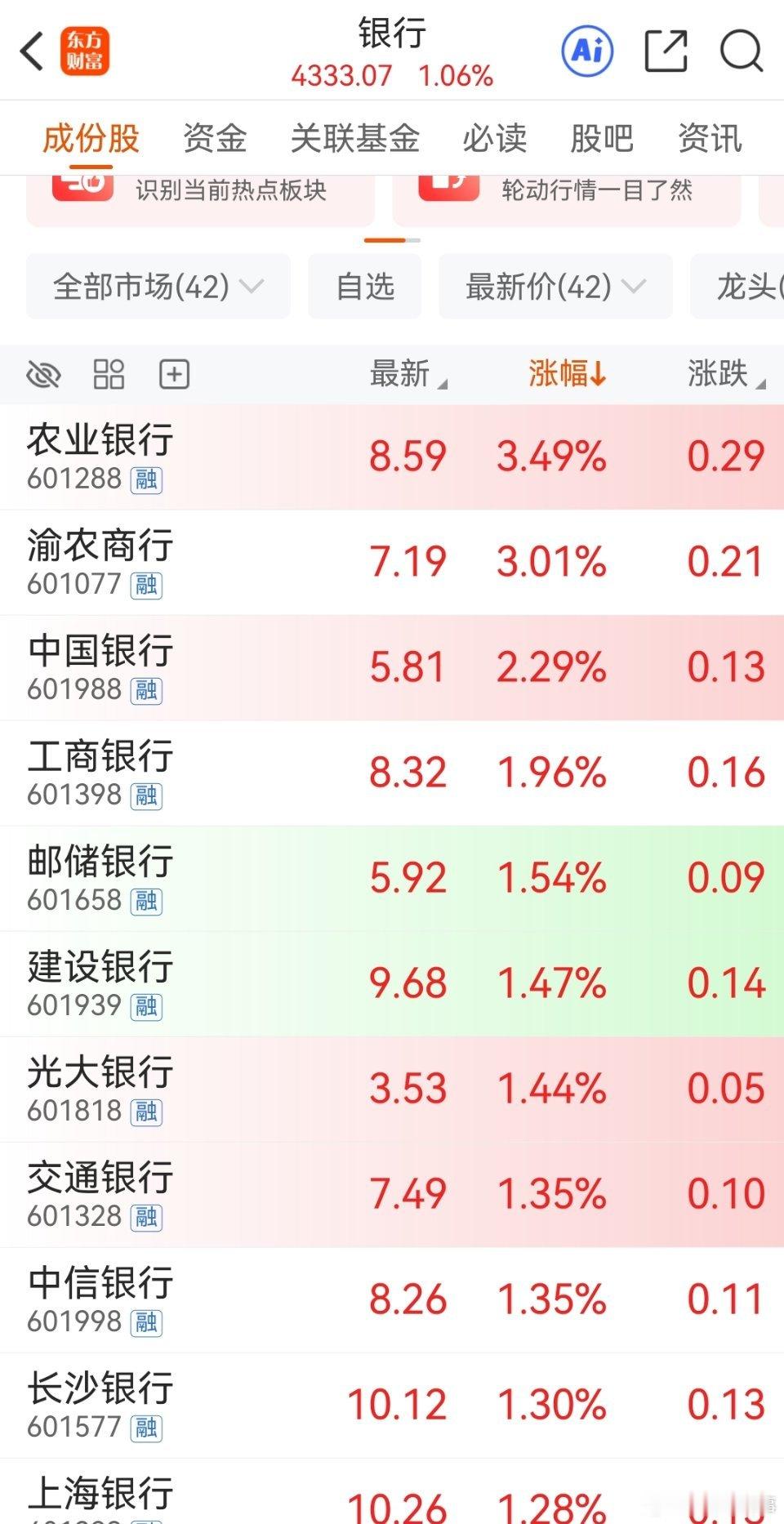 银行开始拉指数了,又是指数红人均k💰的一天。农业银行更是大涨将近3.5