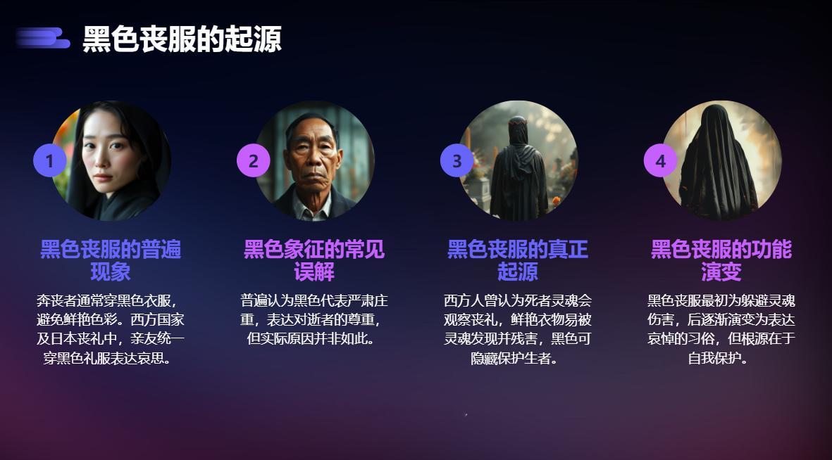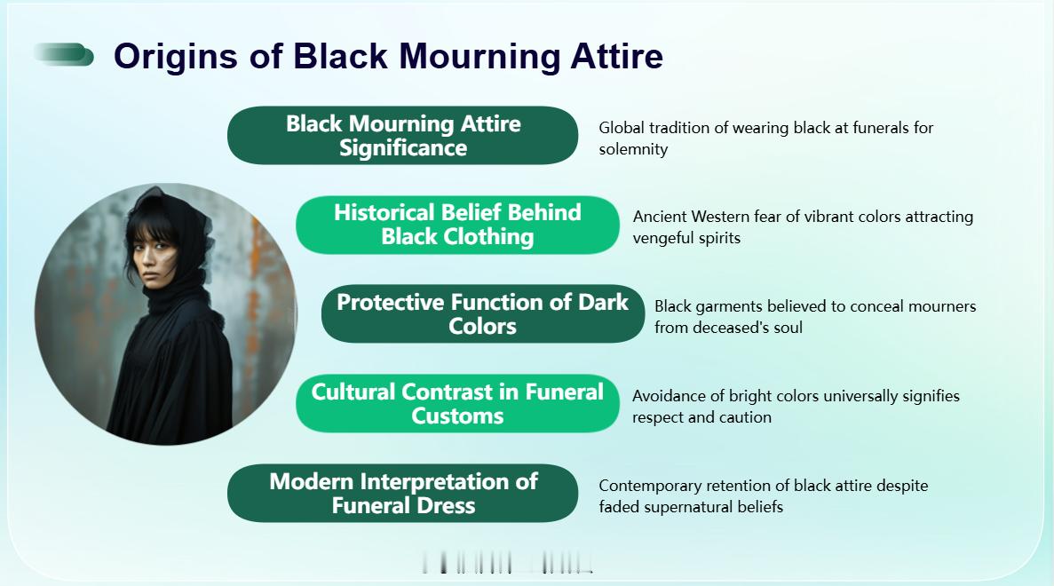 穿黑色丧服是表示严肃吗生活中,奔丧的人一般都穿黑色的衣服,即便不是黑色的,也不会大红大紫的。在西方国家乃至日本,人死之后,亲友在送别的时候都要穿上清一色的黑色礼服。穿黑色礼服究竟是因为什么呢?有人会说,黑色衣服显得严肃、庄重,这样更能表达对死者的尊重。但真正的原因并非如此。很久以前,西方人认为人是有灵魂的,人死之后灵魂就会从身体中挣脱出来。在举行丧礼的时候,死者的灵魂会在天上看着参加丧礼的人。这个时候,如果有人穿着颜色太过鲜艳的衣服,就会被死者的灵魂看到,之后这个人很可能被死者的灵魂残害致死。不过,如果穿着黑衣服的话,就不会那么容易被死者的灵魂发现并残害了。由此说来,穿黑色丧服并非是为了哀悼逝者,而是为了保护自己免遭死者灵魂的伤害。下次再去殡仪馆时,看谁还敢穿得大红大绿的!|||