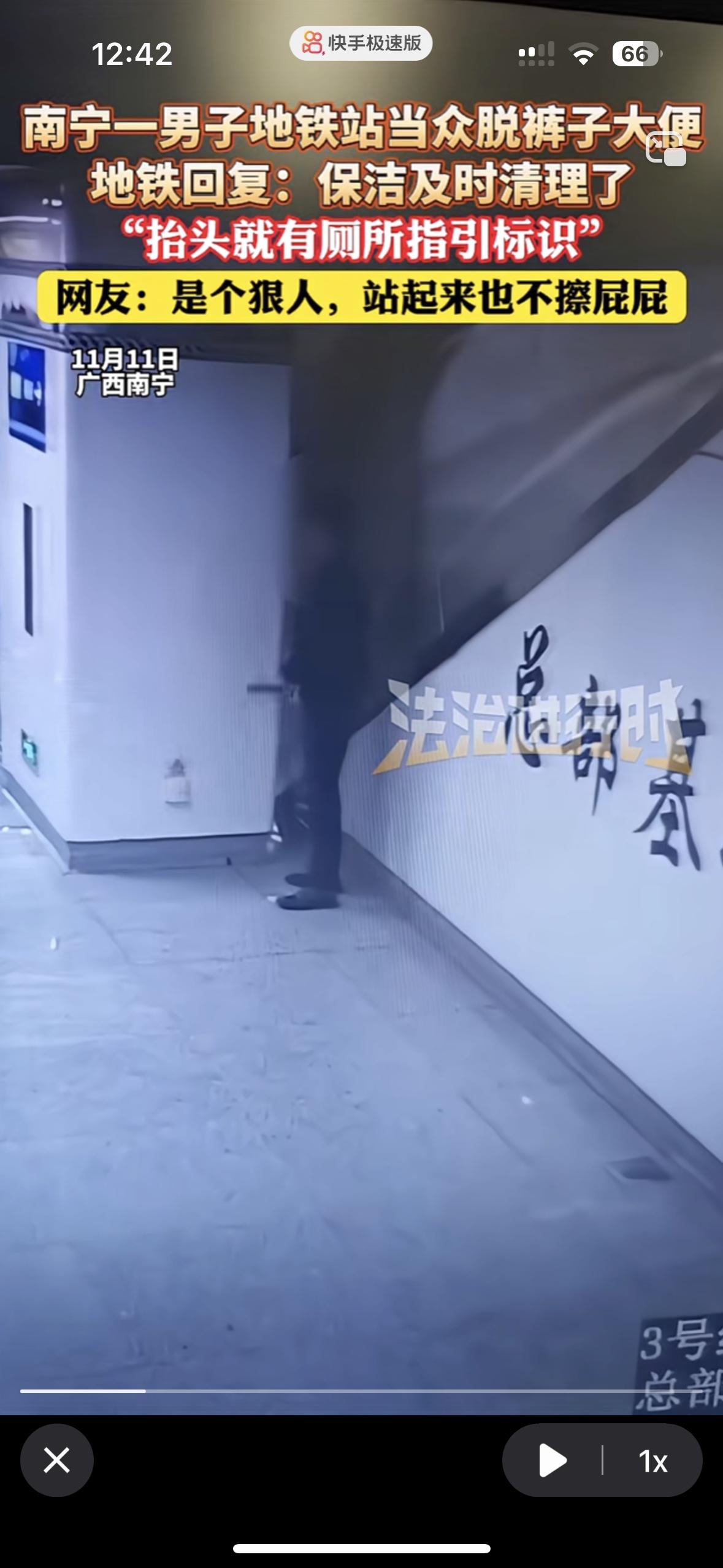 我猜这位大哥一定有什么难言之隐 不然不会在公共场合拉屎 他穿着一身西装,在地铁口找了个角落迫不得已脱下了裤子 拉完了大便直接就提上裤子,擦都不擦就走了!想必可能是急性肠胃炎一秒都等不及了!急性肠胃炎都这样,总不能拉裤子,有时候差一秒钟都不行,看着大哥也是个体面人,保洁阿姨也清理干净了,多给大哥留些体面