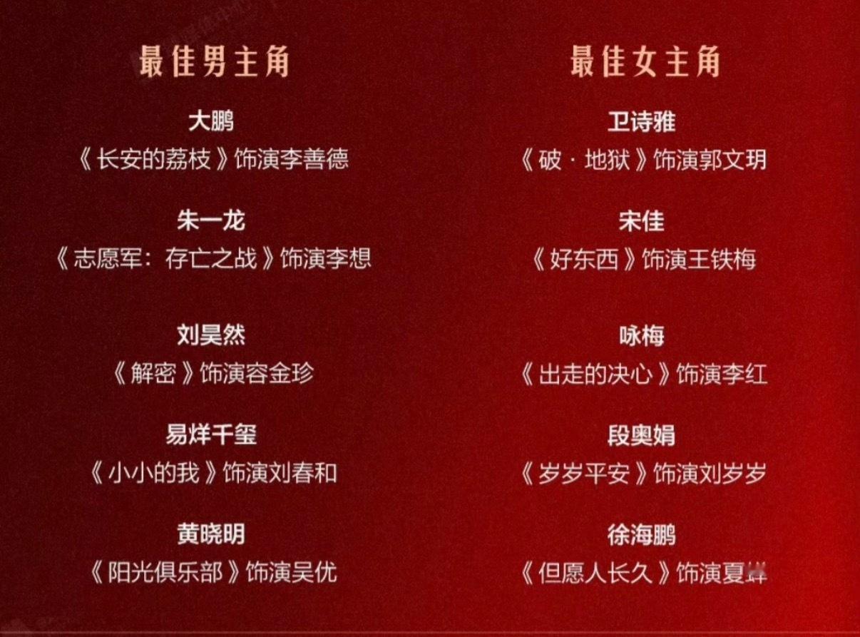 金鸡奖这个提名来看影帝影后竞争都好激烈尤其是女主手心手背都是肉不能让大家都得奖吗