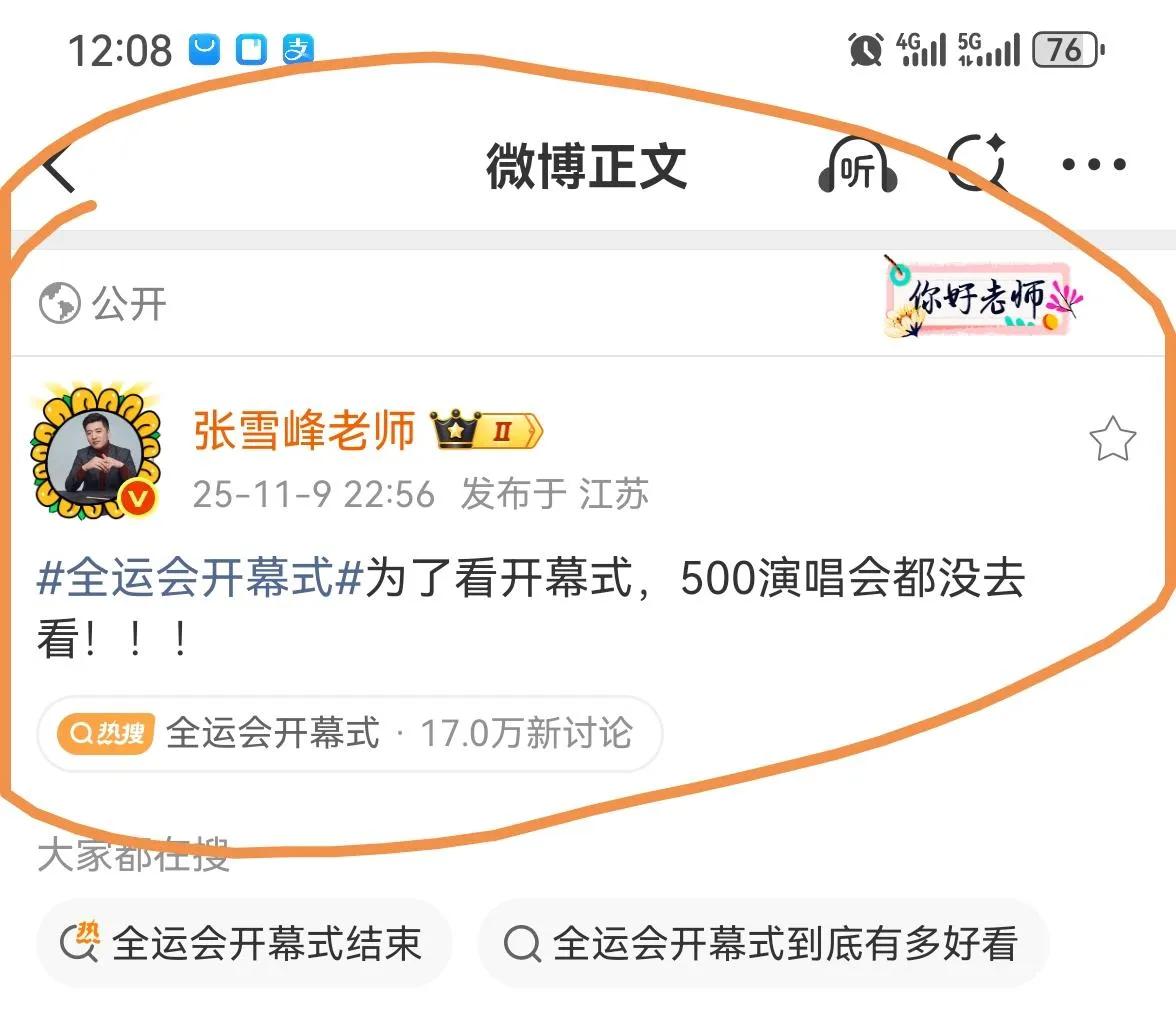 [吃瓜群众]都在问~陪“张雪峰老师”看演唱的女子是谁?大家似乎忽略了一个重要细节——当晚,他为何要“假装”在看全运会开幕式?声东击西?好手段[奸笑] [大金牙]张老师说——过于投入、所以“忘情”…或许,也顺便忘了些“其他事”[灵光一闪]