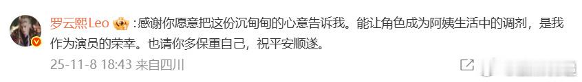 11月9日,那个把润玉、澹台烬当作精神支柱的肺癌晚期阿姨,还是带着没等到《水龙吟》的遗憾,轻轻离开了。她在病痛里靠着“身处黑暗仍不屈服”的角色力量撑过漫长煎熬,女儿替她写下的长文里,藏着对新角色唐俪辞结局的期待;而罗云熙那句“能让角色成为阿姨生活的调剂,是我的荣幸”,成了她生命最后时日里最温暖的光——收到回复时的“非常开心”,是双向奔赴的温柔。