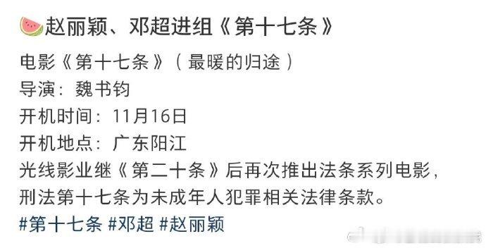 聚焦深层社会议题!赵丽颖邓超进组《第十七条》,解锁检察官与相关角色,联手揭开案件真相。