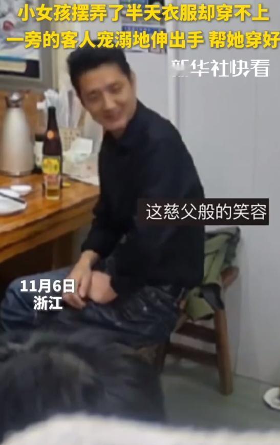 浙江一小店内的善意无需言语温岭小店藏温情!陌生客人暖心帮小女孩穿衣服,善意无需言语~ 台州交警护送迷路爷孙平安回家
