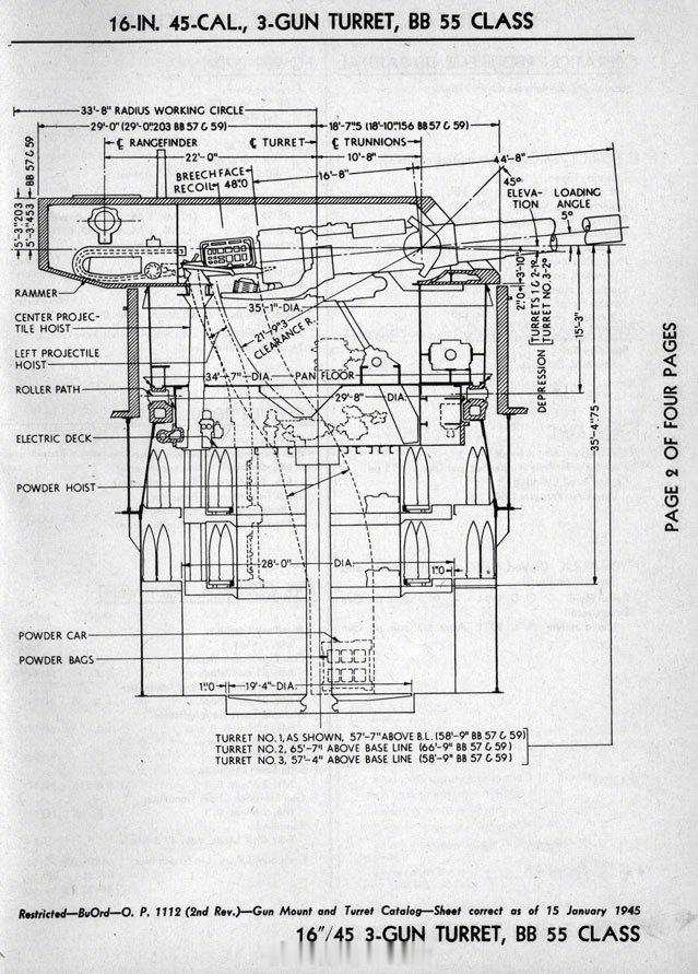 这些照片显示的是法国驱逐舰“米兰”号(图1)在卡萨布兰卡港外搁浅沉没的情景。1942年11月卡萨布兰卡海战期间,它被美国海军“马萨诸塞”号战列舰(图5)的一门16英寸45倍径Mk6型舰炮击中,距离约为26千米。这是有记录以来最远的舰对舰命中距离。法国向德国投降后, “米兰”号战列舰加入了维希法国海军。1942年11月8日,盟军发动“火炬行动”进攻法属北非时, “米兰”号正驻扎在法属摩洛哥的卡萨布兰卡。在卡萨布兰卡海战中,“米兰”号与美国海军第34特遣舰队交战,被美国海军“马萨诸塞”号战列舰(BB-59)以及其他美国舰艇的炮弹击中后搁浅。此前一些研究错误地将“米兰”号的受损归因于驱逐舰“威尔克斯”号的炮弹。事实上,“威尔克斯”号在“米兰”号被击退前至少25分钟就已停止攻击(“米兰”号的战斗发生在上午10点前不久)。但法国方面的报告始终指出, “米兰”号遭受的损伤包括一枚406毫米(16英寸)炮弹的攻击,以及随后击中的两枚炮弹(可能是8英寸炮弹)。米兰号在被16英寸炮弹击中时正在航行中,如果历史学家文森特·奥哈拉和战舰湾博物馆对马萨诸塞号航海日志及其对应的法国记录的解读是正确的,那么这次命中将是历史上战列舰之间最远的舰对舰命中,距离在26千米左右。16英寸/45倍径Mark 6型舰炮(图6)是美国海军于1936年为其条约级战列舰设计的一种舰炮。它于1941年装备于北卡罗来纳级战列舰,取代了原计划的14英寸/50倍径Mark B型舰炮,并被用于后续的南达科他级战列舰。这些战列舰共装备九门该型舰炮,分装在三个三联装炮塔内。该型舰炮是对科罗拉多级战列舰所使用的16英寸/45倍径Mark 5型舰炮的改进,也是衣阿华级战列舰所使用的16英寸/50倍径Mark 7型舰炮的前身。美国海军还剩下一些16英寸/50倍径的Mark 2型火炮,这些火炮是20世纪20年代初被取消的列克星敦级战列巡洋舰和南达科他级战列舰项目遗留下来的。然而,很明显,Mark 2型火炮对于必须遵守第二次伦敦海军条约规定的35000吨标准排水量的北卡罗来纳级和新建的南达科他级(1939年)战列舰来说太重了。事实上,Mark 6型45倍径“三联装”炮塔比Mark 2型50倍径火炮轻了约400长吨(410吨);此外,由于Mark 6型炮座尺寸缩小,其总重量比Mark 2型轻了2000吨。Mark 6 型 16 英寸/45 倍径舰炮是 Mark 1 型舰炮(20 世纪 30 年代后期升级为 Mark 5 和 Mark 8 型)的改进型,安装在科罗拉多级战列舰上。Mark 6 型舰炮的炮弹重量上限为1020 公斤,最大射程为 32000 米,炮塔仰角上限为 30 度。与其前身相比,Mark 6 型舰炮的一项重大改进是能够发射由军械局研制的新型1,200 公斤穿甲弹。这种重型炮弹在全新火炮的满装药状态下,初速可达700 米/秒。减少装药量后,同样的炮弹将以550 米/秒的速度发射。炮管寿命——即火炮在需要更换或修复炮管内衬之前大约可以发射的炮弹数量——在使用穿甲弹时为395发,而使用练习弹时则增加到2860发。相比之下,阿拉斯加级大型巡洋舰的12英寸/50倍径Mark 8型火炮的炮管寿命为344发,而衣阿华级战列舰上安装的16英寸/50倍径Mark 7型火炮的炮管寿命为290发。每座炮塔每秒旋转 4 度,可向舰体两侧各旋转150 度。火炮最大仰角为 45 度;一号和三号炮塔最大俯角为 -2 度,但由于二号炮塔位于上射位置,其火炮最大俯角仅为0度。[ 3 ]每门炮的炮管总长18.69米,相当于45倍口径,因此得名16英寸/45倍径;炮膛长度为18米,膛线长度为15.7米。最大射程在仰角45度时达到。使用重型穿甲弹时,最大射程为33.7公里,而使用较轻的860公斤高容量(HC)炮弹时,最大射程为36.7公里。火炮重量为87吨,不包括炮闩;炮塔重量略超过1410吨)。发射同一枚炮弹时,16英寸/45倍径Mark 6型炮在击中甲板装甲方面略优于16英寸/50倍径Mark 7型炮——45倍径炮弹的速度较慢,这意味着其下落轨迹更陡。在32公里的距离上,45倍径炮弹击中舰船的角度为45.2度,而50倍径炮弹的入射角度为36度。[ 3 ]Mark 6 和 Mark 7 型舰炮最初设计用于发射相对较轻的1,020 公斤Mark 5 型穿甲弹。然而,在任何一艘衣阿华级战列舰开工建造之前,这些舰炮的炮弹装填系统就被重新设计,以使用“超重型”1,200 公斤APCBC(带帽穿甲弹、弹道帽穿甲弹)Mark 8 型炮弹。 这些大口径舰炮设计用于发射两种不同的 16 英寸(406 毫米)炮弹:一种是用于反舰和反建筑作战的穿甲弹,另一种是用于攻击无装甲目标和岸轰的高爆弹。Mark 8型炮弹使北卡罗来纳级、南达科他级和衣阿华级战列舰拥有所有战列舰级别中第二强的舷侧火力,尽管北卡罗来纳级和南达科他级是条约型战列舰。只有大和级战列舰的舷侧火力比它们更强。Mark 6型炮弹相对于其他同时代战列舰的缺点是射程相对较短。推进剂由燃烧速度极快的无烟火药小圆柱颗粒组成。最大装药量为六个丝绸袋,每个丝绸袋装有50 公斤推进剂。Mark 6 16英寸火炮在美国二战战斗史上具有多项殊荣。首先,战列舰“马萨诸塞”号 (BB-59)以16英寸/45倍径舰炮作为其主要武器,据信她发射了美国在二战中首次和最后一次使用的16英寸炮弹。首次使用是在1942年11月8日的卡萨布兰卡海战(瓜达尔卡纳尔岛海战前不久)。最后一次使用是在1945年8月9日日本滨松近海。此外,在卡萨布兰卡海战中,这是美国海军快速战列舰在欧洲战场上唯一一次实战开火,也是二战中美国海军快速战列舰与敌方战列舰进行空战的两场战役之一。“马萨诸塞”号发射 的重型16英寸
