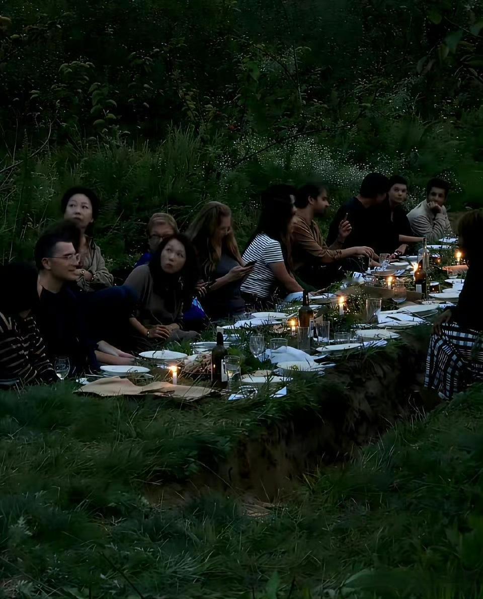 坟头聚餐? 人还是不能吃太饱,要不然都不知道该怎么作了! 图片中这群人挖一条深坑,席地而坐,在草丛里摆上精致的碗碟,如此强烈反差让人无法认同。 野餐很正常,但既要挖坑,还要摆盘,这种硬凹造型的野餐就很别扭了。就图片中这种环境,蚊虫肆虐,菜没吃着,自己反倒喂饱了蚊子,要是突然有辣条怎么办。为了拍照片费这么大代价太不值当了。